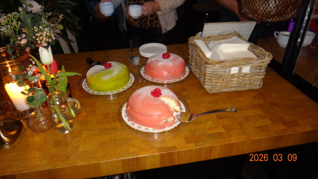 Efter det serverades vi ugnstekt benfri kycklinglårfilé, grönsaker, konjaksås och råstekta potatis, kaffe o princesstårta. Traditionellt avslutades månadsmötet med lottdragning.