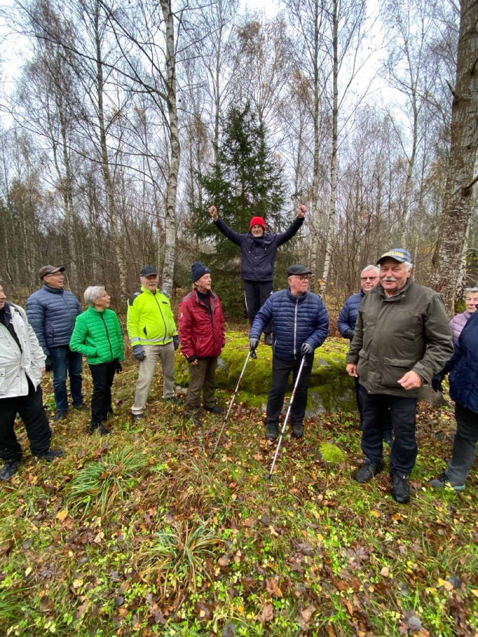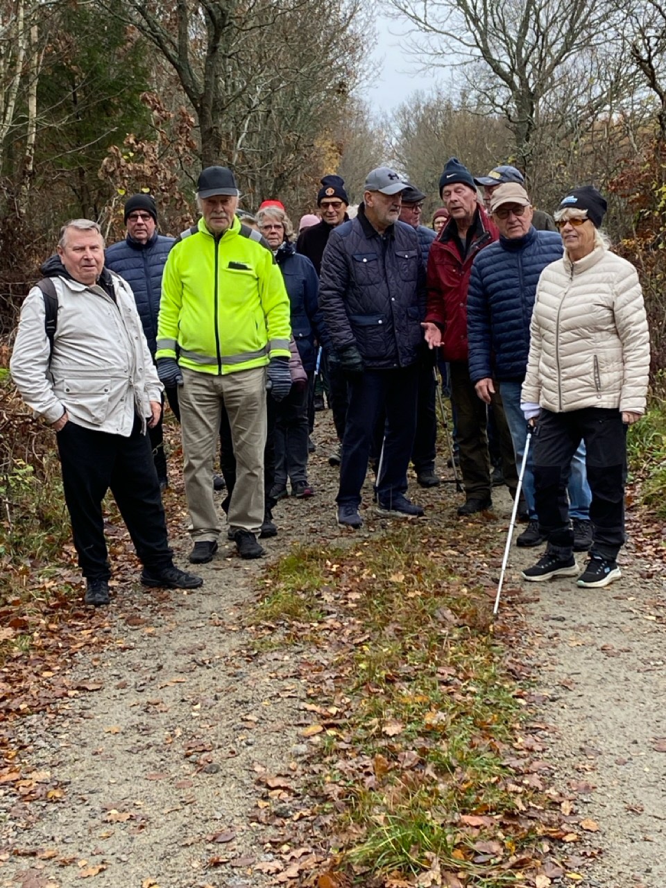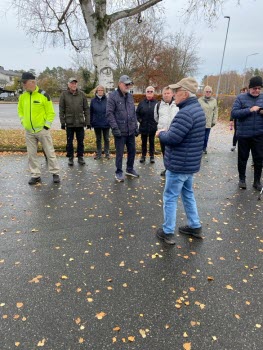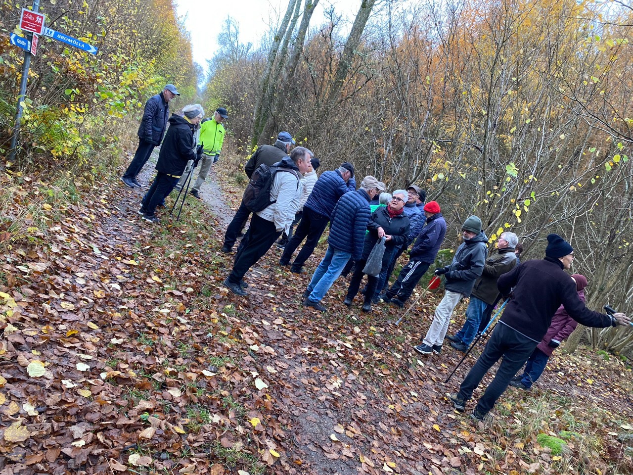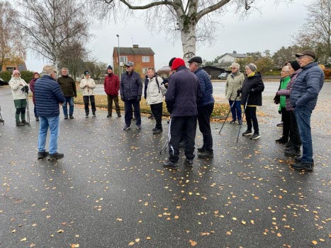 Från Folkets hus gick promenaden till Likstenen och tillbaka via Dalaskolorna. En runda på ca 4,4 km. Palle ledde det hela och Ing-Britt tog fotona. Det blåste en frisk vind från syd. Mulet, men inget regn. 8-9°C. Vi var 24 medlemmar på promenaden.