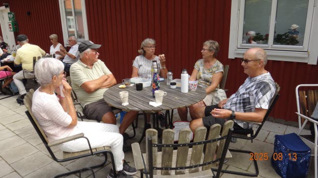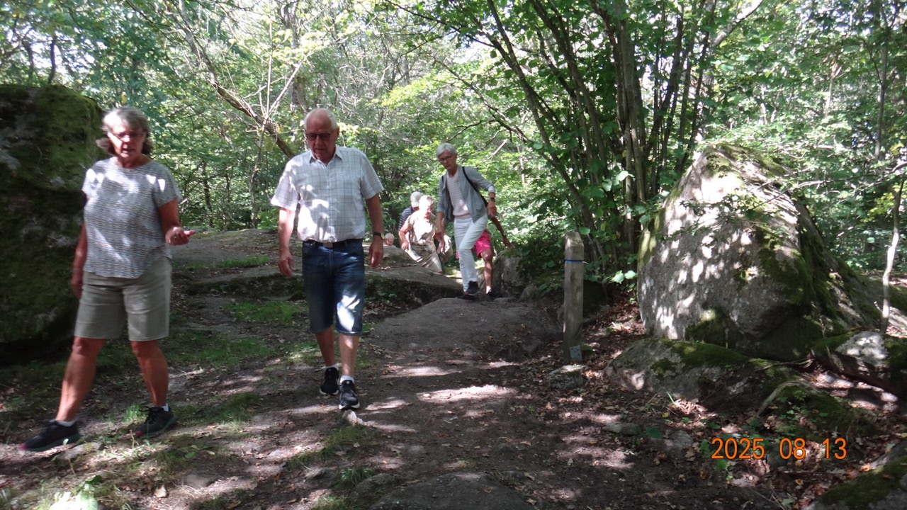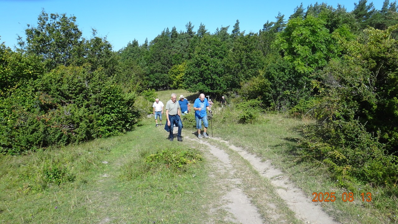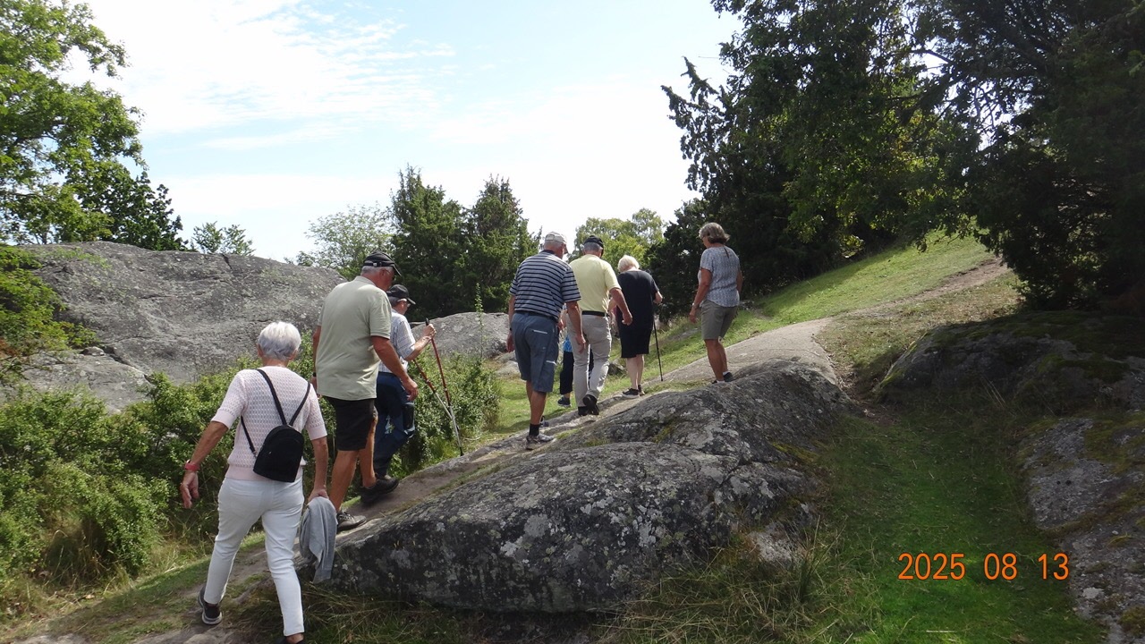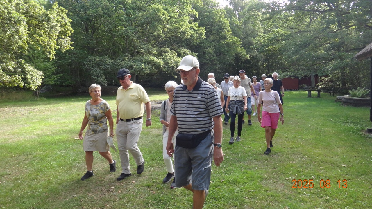 Dags för höstterminens första onsdagspromenad, vilken vi traditionsenligt förlägger på vackra Kjugekull. Vackert väder, nästan vindstilla och en temperatur på ca 24°C. Vi var 25 medlemmar som gick den röda slingan, vilken är 3,25 km lång. Efteråt intog vi medhavd kaffekorg.