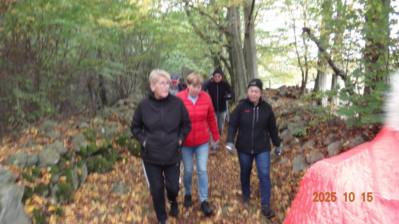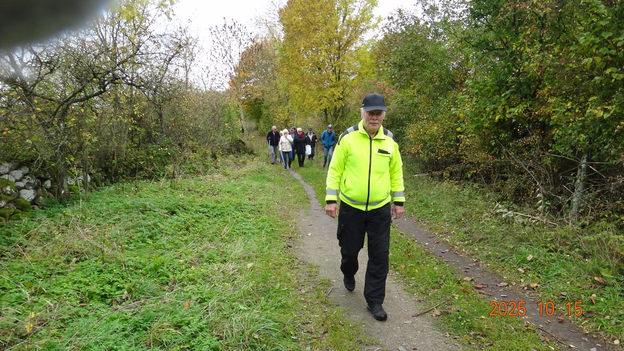 Efter att ha samlats vid Folkets hus promenerade vi (23 medlemmar) Branthallarundan. Den är 5,2 km lång. Vädret var mulet med en svag vind från norr. 13-15°C.