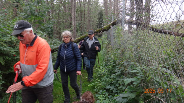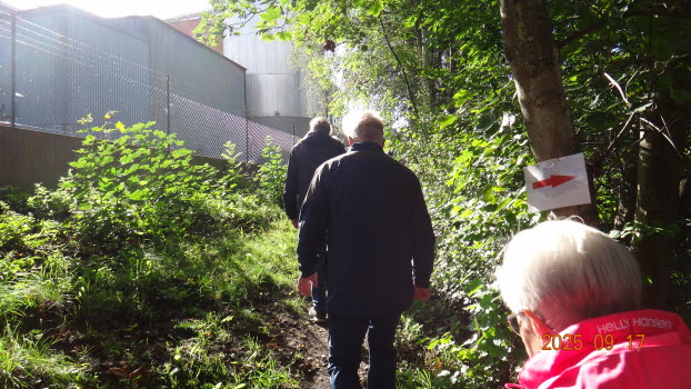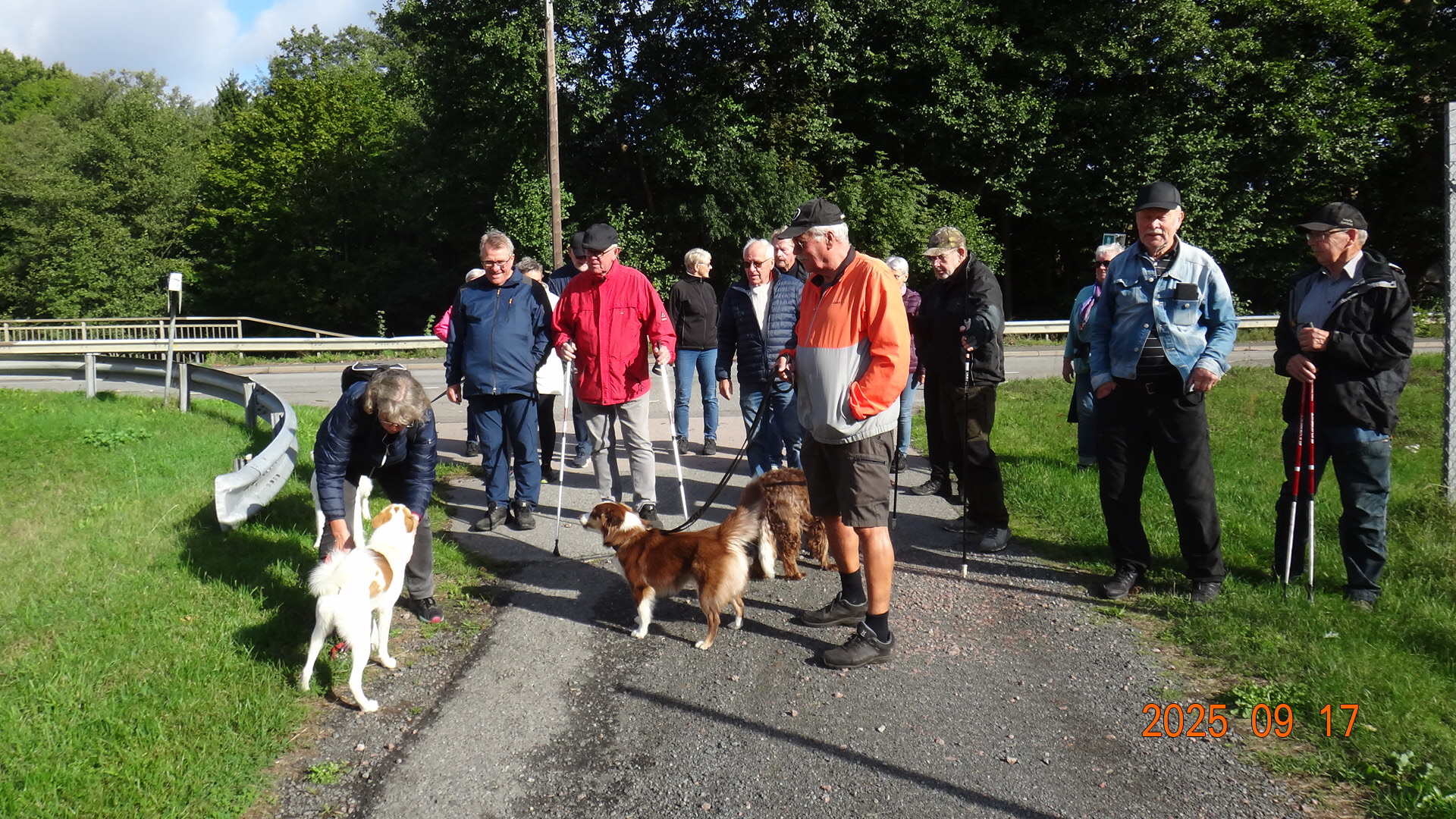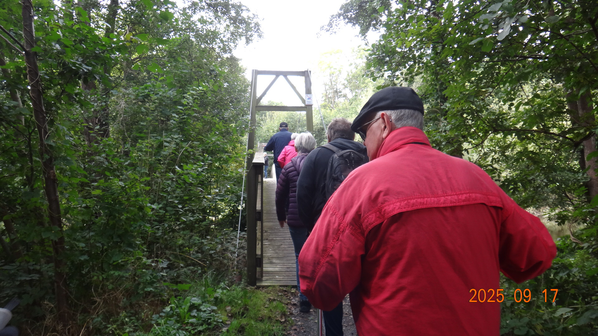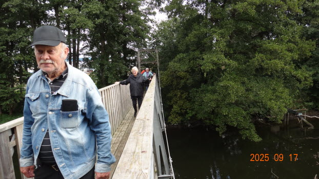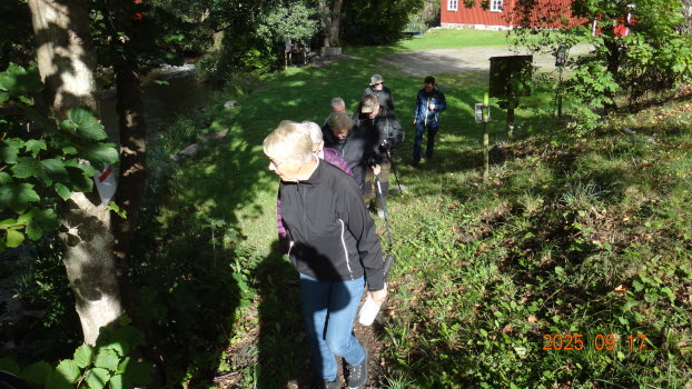 Efter att vi samlats vid Folkets hus samåkte vi till Nymölla Bruks parkeringsplats. Därifrån gick vi ut till Oxudden längs ån (en bit av Lilla Kungsleden) och tillbaka via hängbron och Nymölla samhälle. Det blev 3,5 km. Vinden var frisk från väst, mulet och emellanåt lätta regnskurar., 16-17°C. 20 medlemmar kom.