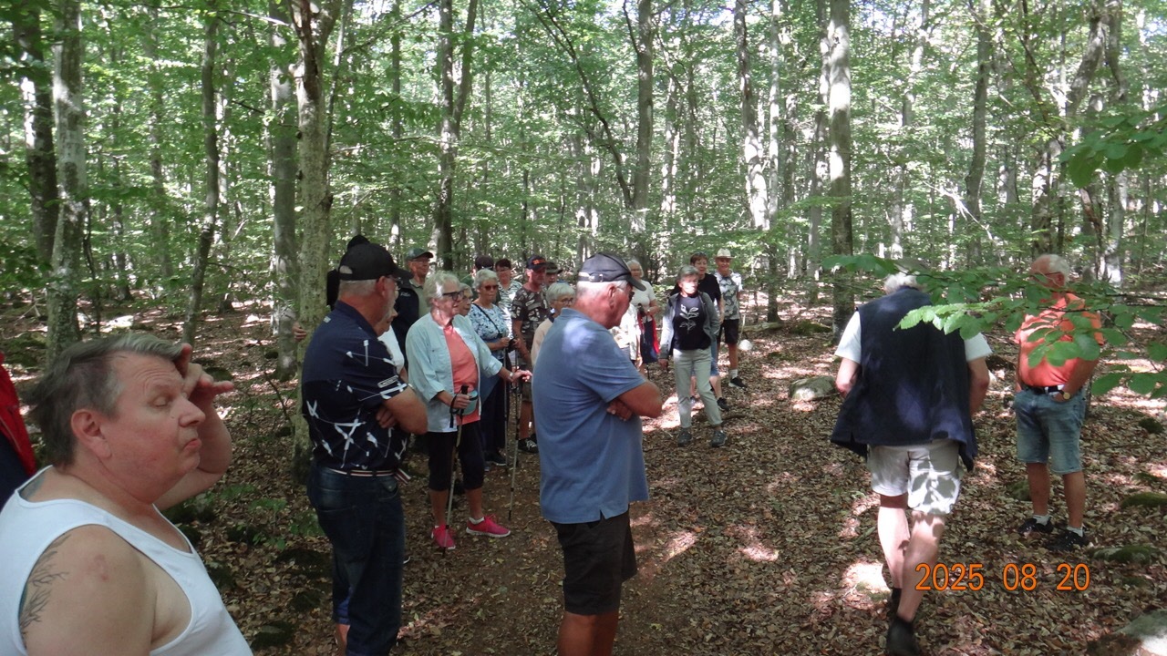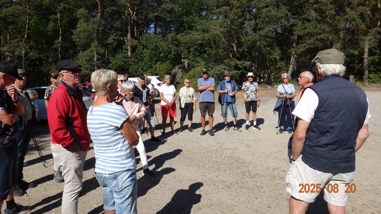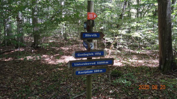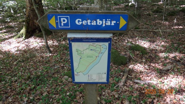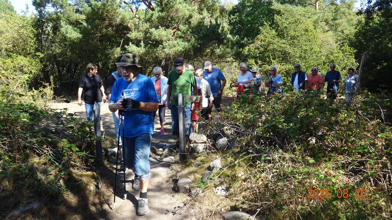 Efter att ha samlats vid Folkets hus samåkte vi till Getabjär i Naturreservatet Listershuvud. Där guidade Jonny Åkesson oss längs den gula slingan (ca 4,5 km). Vädret vart strålande och i det närmsta vindstilla inne i avenbokskogen, drygt 20°C. Efter promenaden intog vi medhavd kaffekorg.