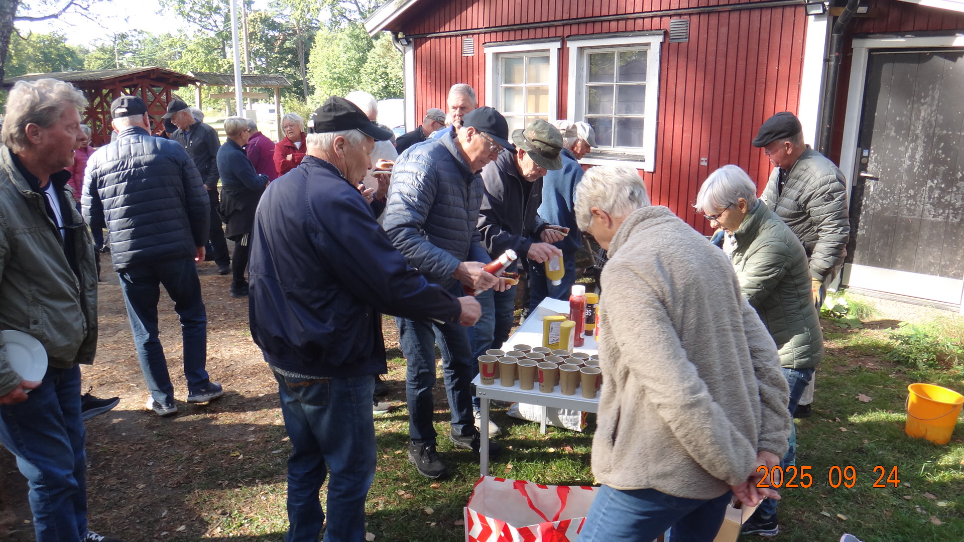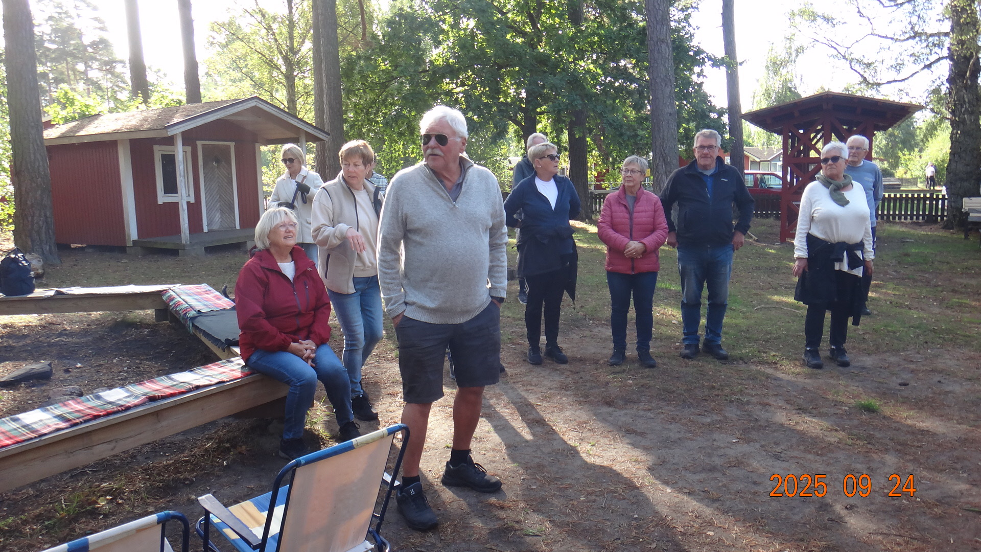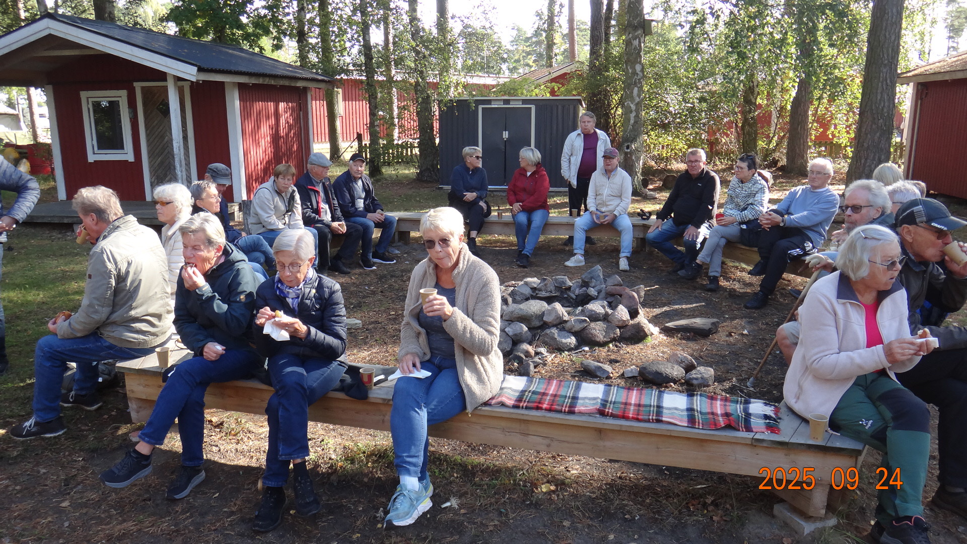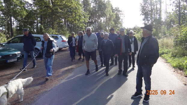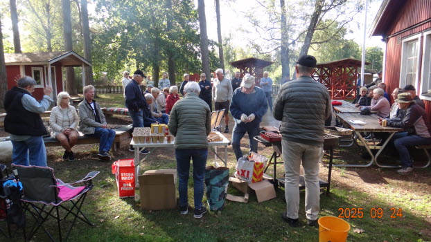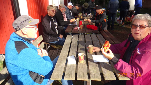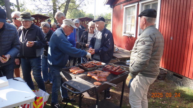 Vi samlades på Strandängen där vi promenerade i skogen ca 3 km för att därefter inta grillade korvar med bröd och dryck, som Palle, Pelle och Eva fixat under tiden på Scoutstugans område. En strålande vacker dag, vindstilla och 12-14°C. 41 medlemmar var där.