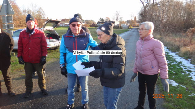 Vi samlades i Småbåtshamnen. Vi inledde med att gratta Palle på hans 80-årsdag. Sedan gick vi en Rökebacksrunda på 4 km. Vädret var vackert och ca 3°C. Vi var 22 medlemmar.