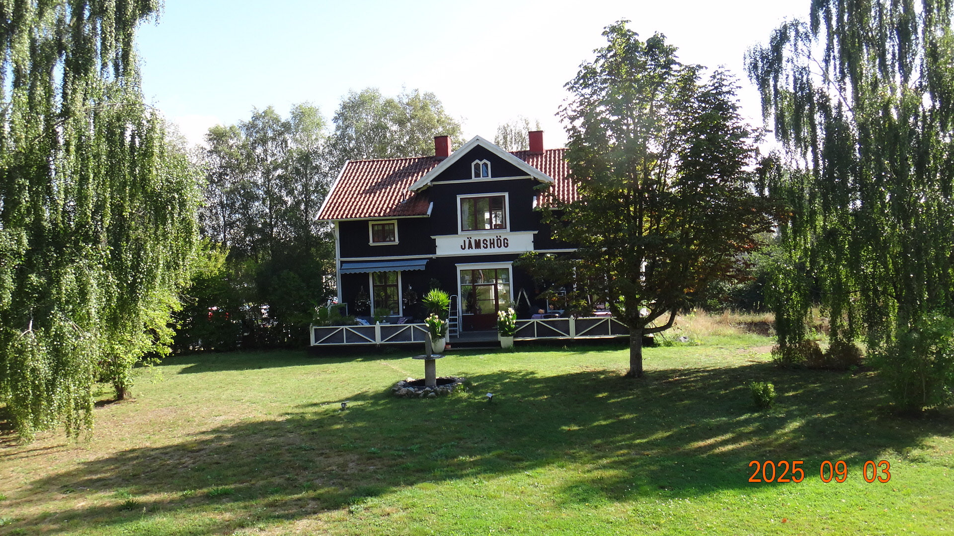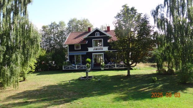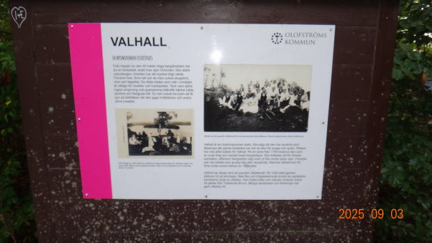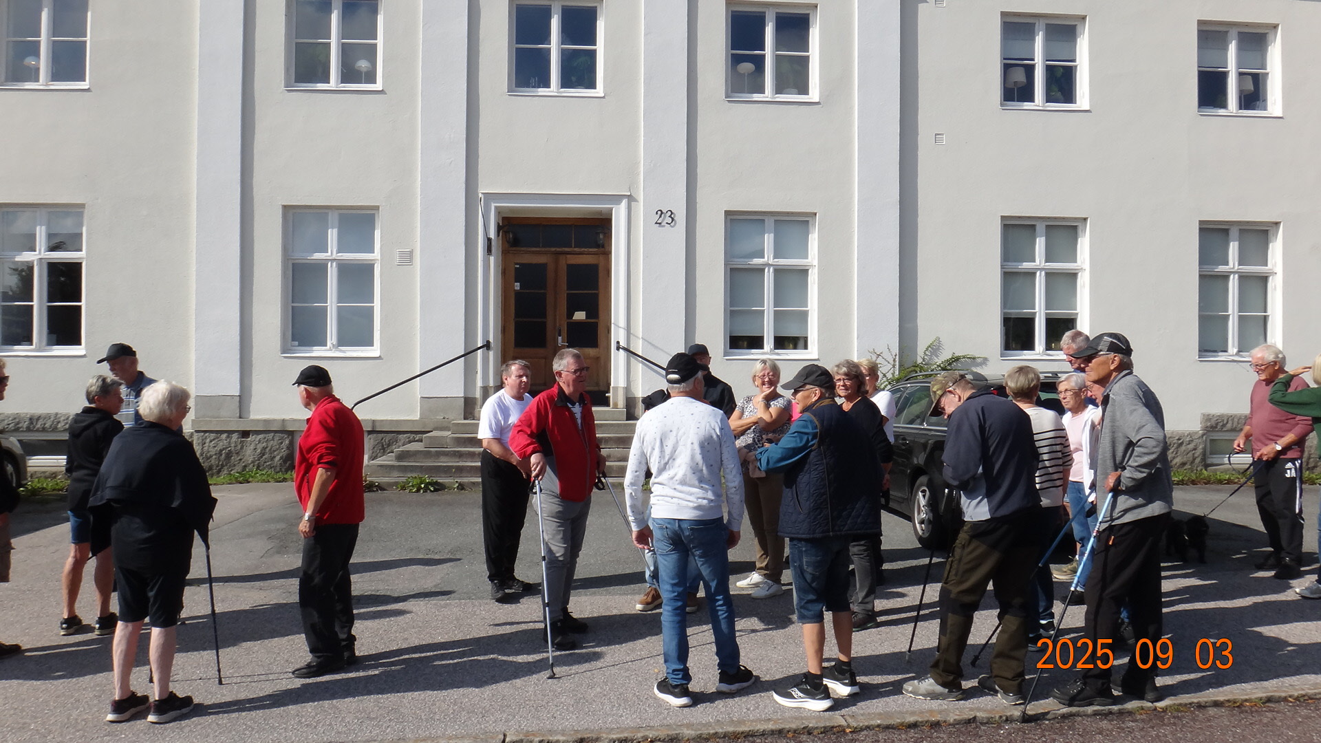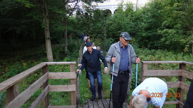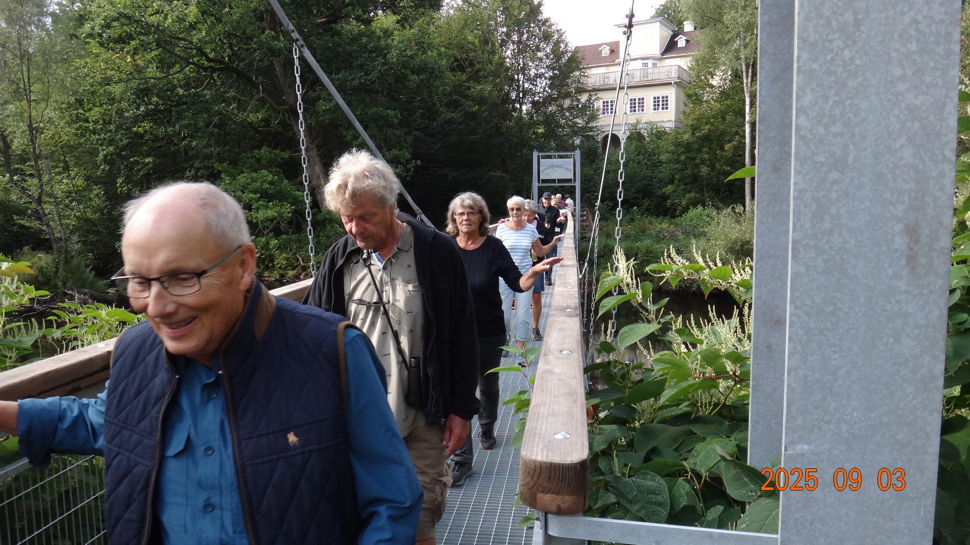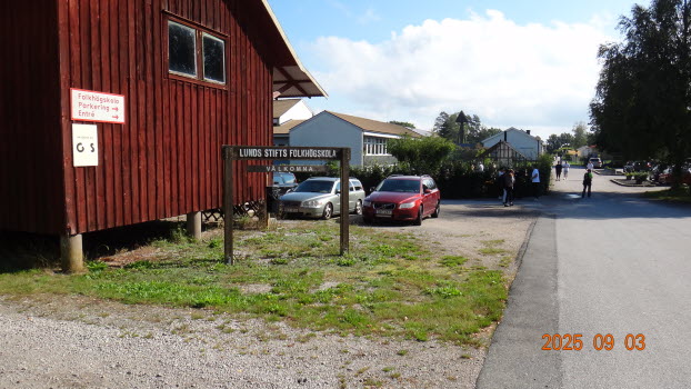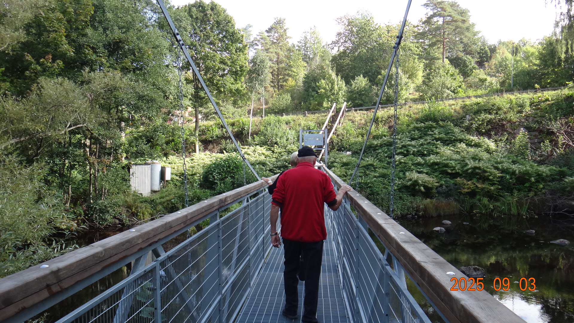 Efter samling i Småbåtshamnen samåkte vi till Kylingekorset, där Sven-Erik Larsson guidade oss till Folkhögskolan i Jämshög. Där gick vi över Holjeån på en hängbro. Tillbaka till bilarna körde vi Valhall ättestupa med sin vackra utsikt över sjön Orlunden. Vädret var halvklart, måttlig västlig vind och 20-22°C. Hemfärden gick via Ekne Gårdsbutik för lite shopping. Vi var 27 st.