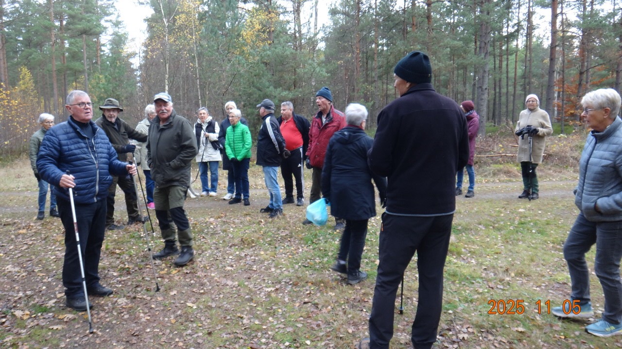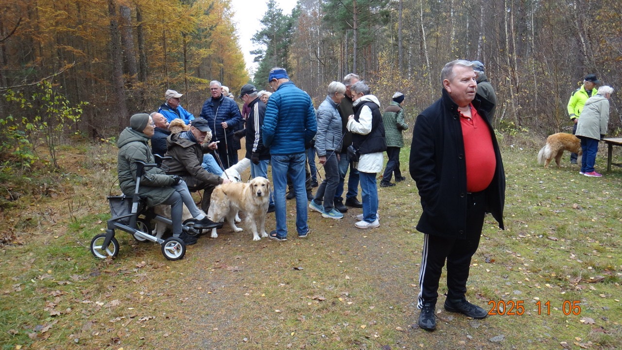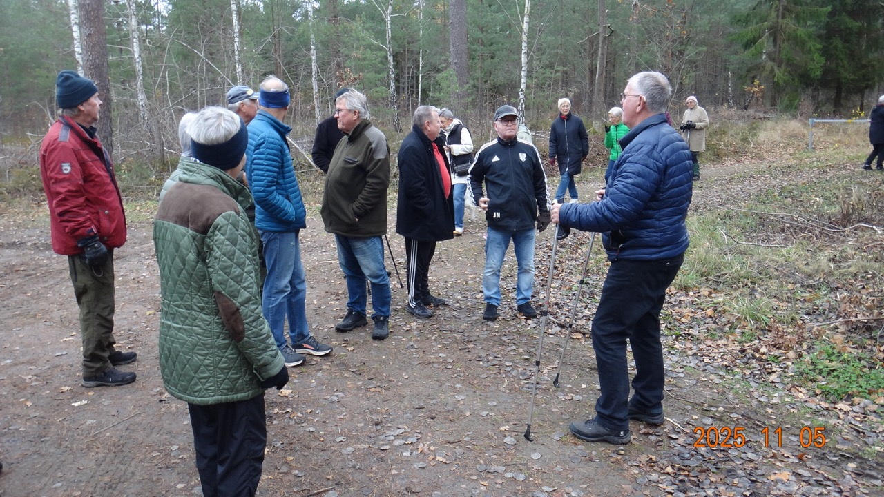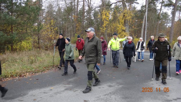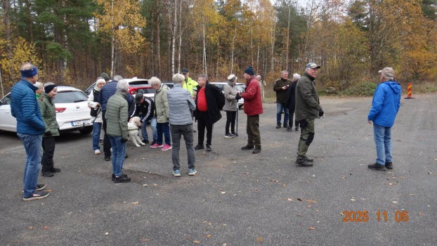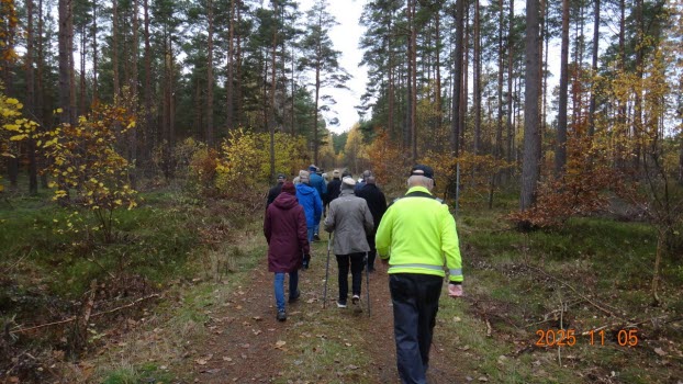 Vi samlades vid Möbelaffären för att gemensamt köra till Gualövskogen vid MatTinas. Vi var 24 medlemmar som guidades runt i skogen av Pelle. Det blev ca 3,5 km. Vädret var lugnt, halvmulet, nästan vindstilla och ca 12°C.