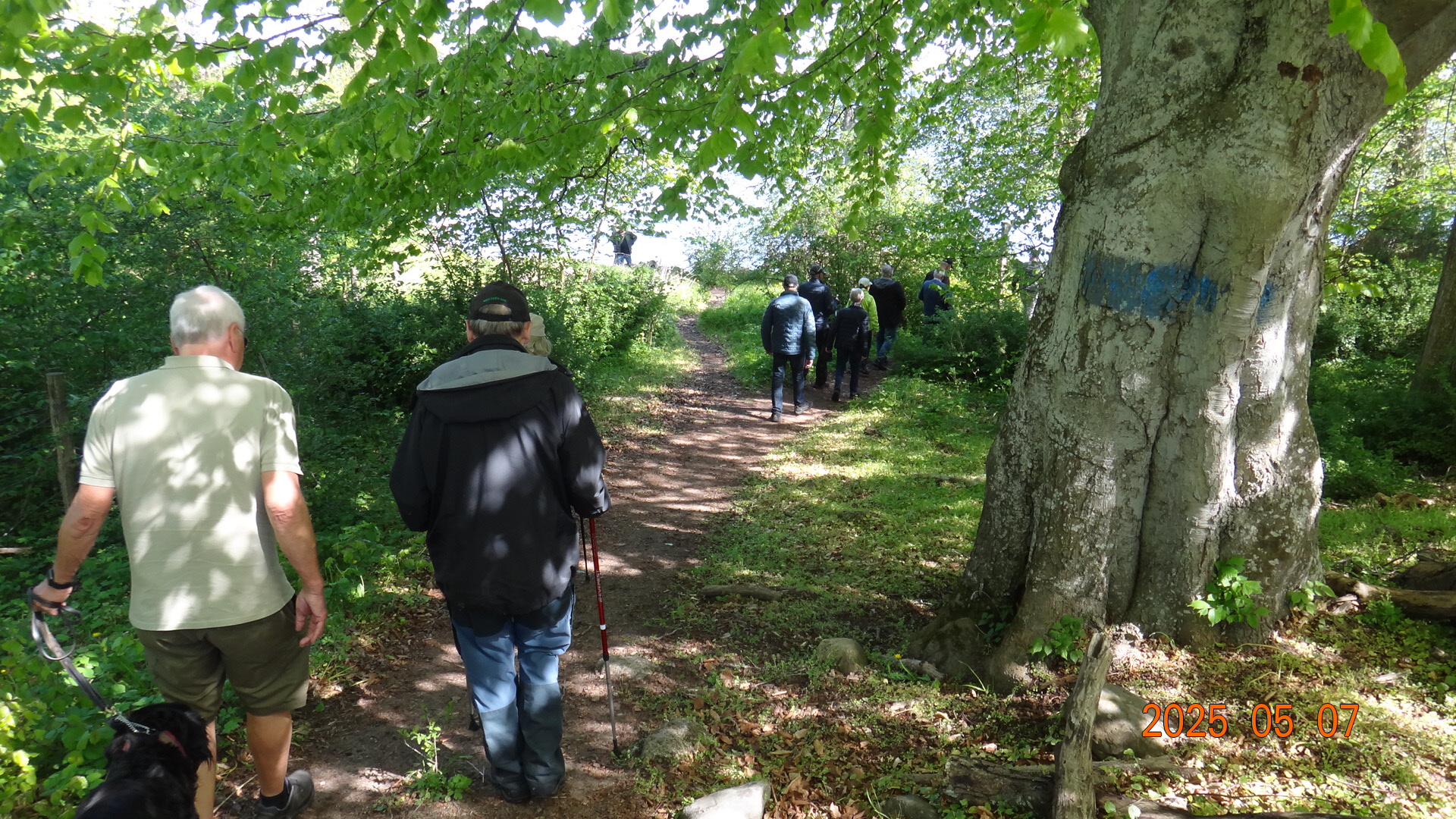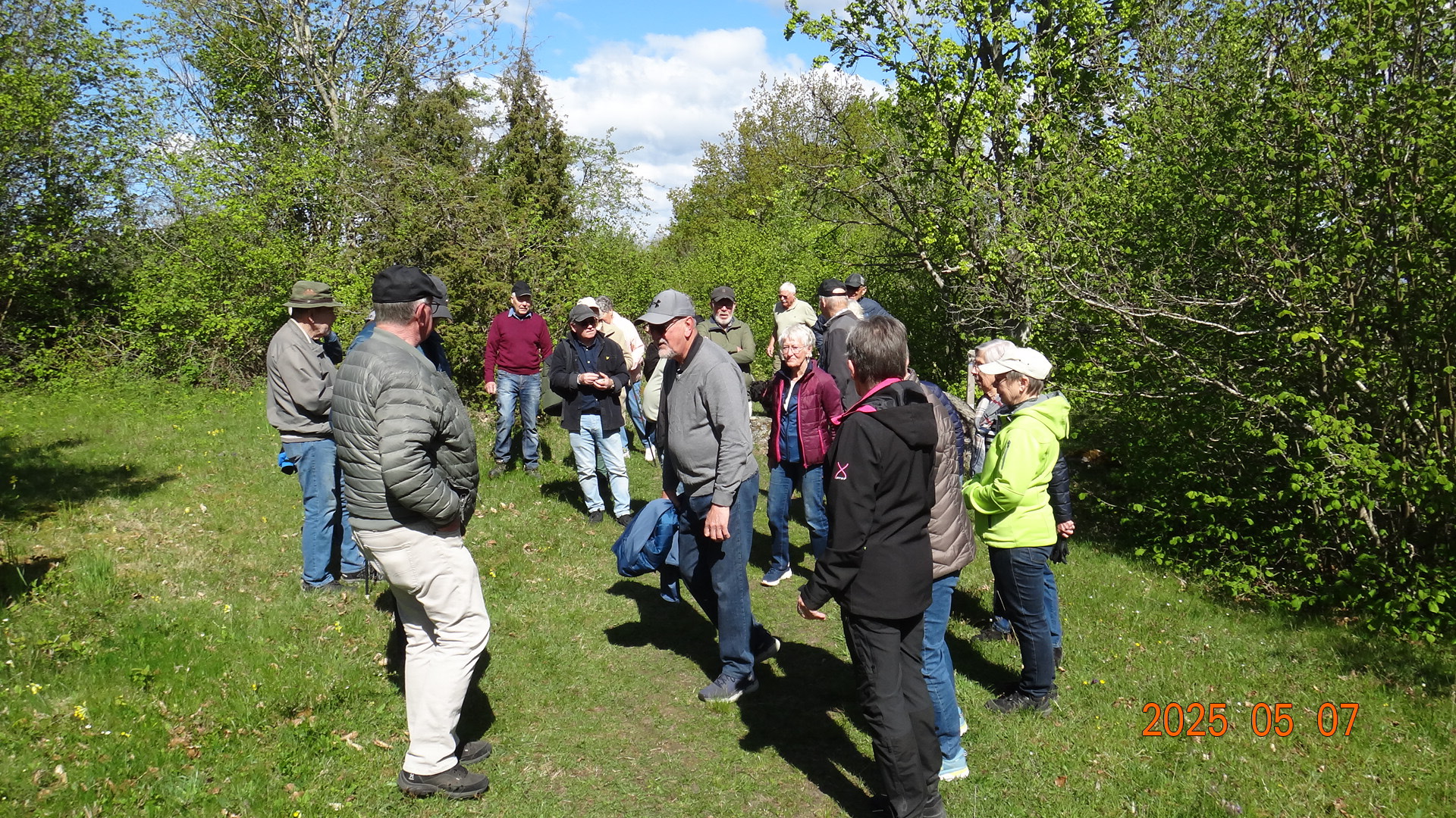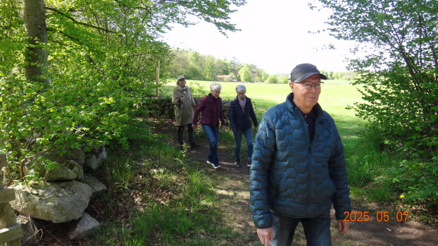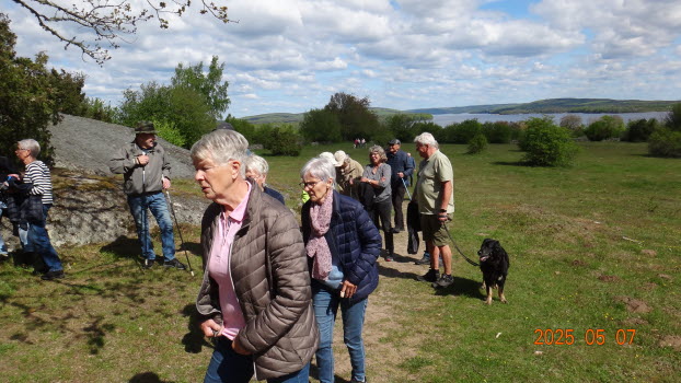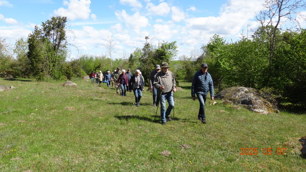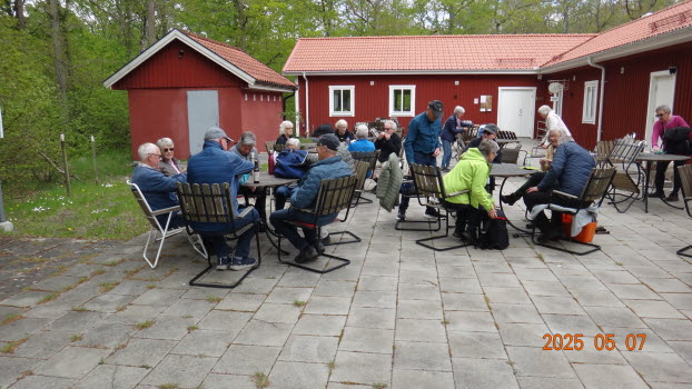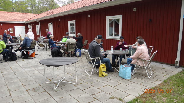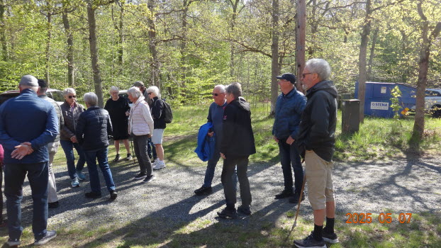 Vi möttes direkt på Kjugekull och gick den röda slingan, som mäter 3,3km. Vi var 33 medlemmar som bjöds på klart till halvklart väder med en svag SV vind och ca 13°C. Efter promenaden intog vi medhavd kaffekorg. Flera näktergalar sjöng.