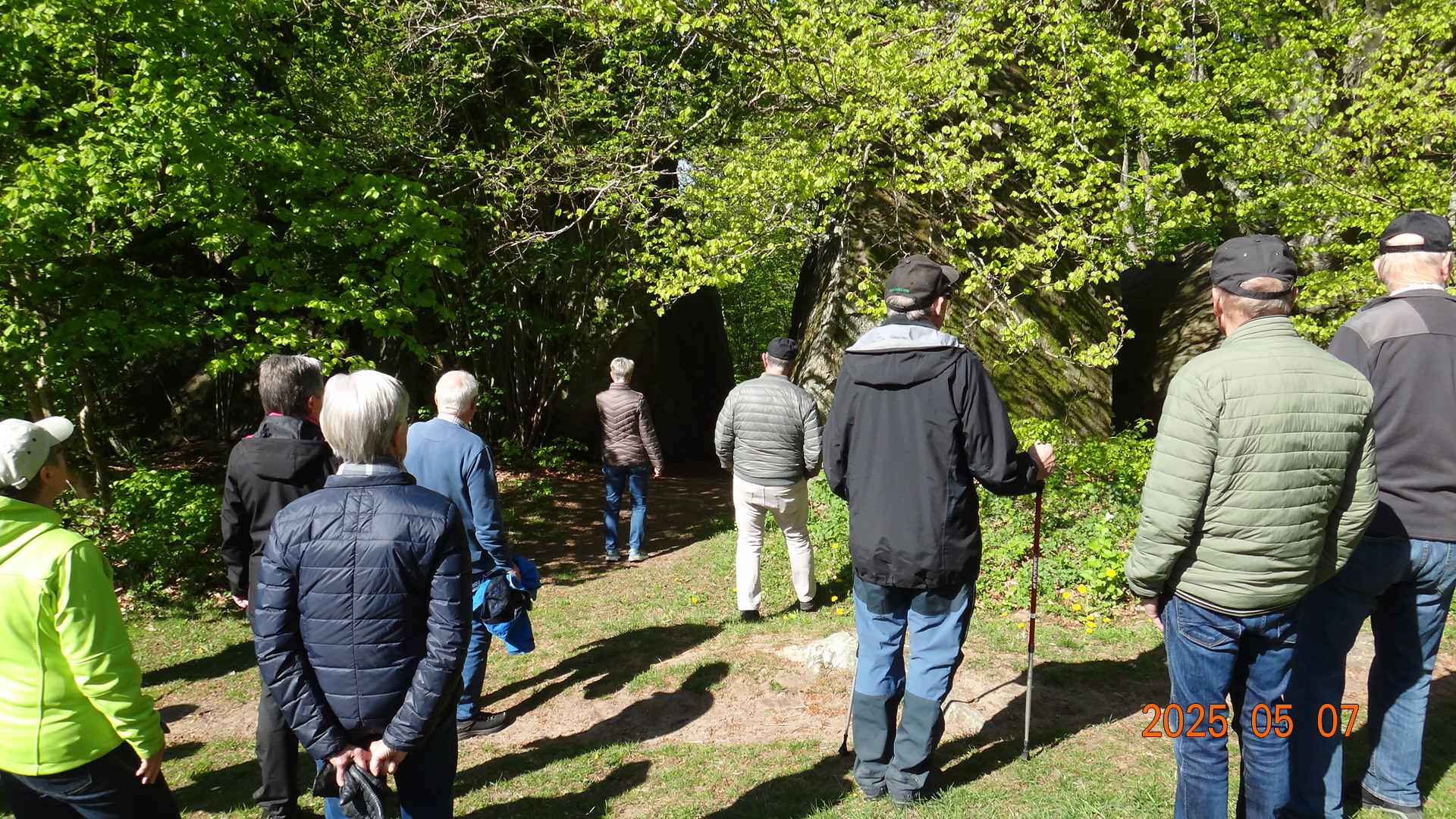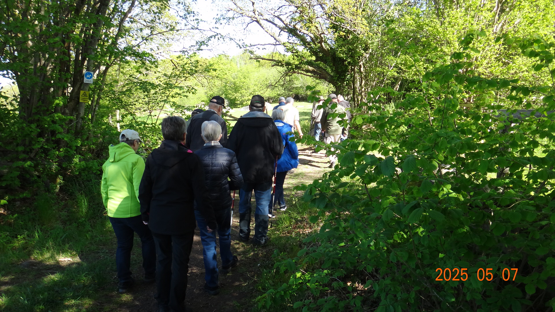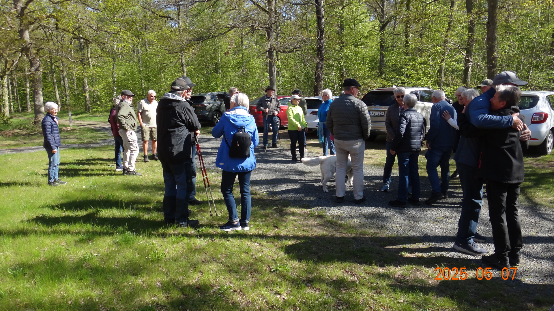 Vi möttes direkt på Kjugekull och gick den röda slingan, som mäter 3,3km. Vi var 33 medlemmar som bjöds på klart till halvklart väder med en svag SV vind och ca 13°C. Efter promenaden intog vi medhavd kaffekorg. Flera näktergalar sjöng.