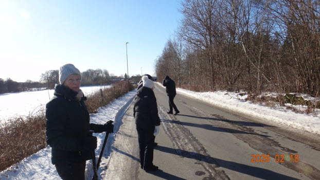 14 medlemmar samlades vid Småbåtshamnen i ett strålande vinterväder, ca -6°C, NV vind och alldeles klart. Vi gick upp till fältaskogen och kollade byggnationen av cykelvägen som just nu görs. Ursäkta att en bilder är dubblerade. Beror på strul i systemet en tid.