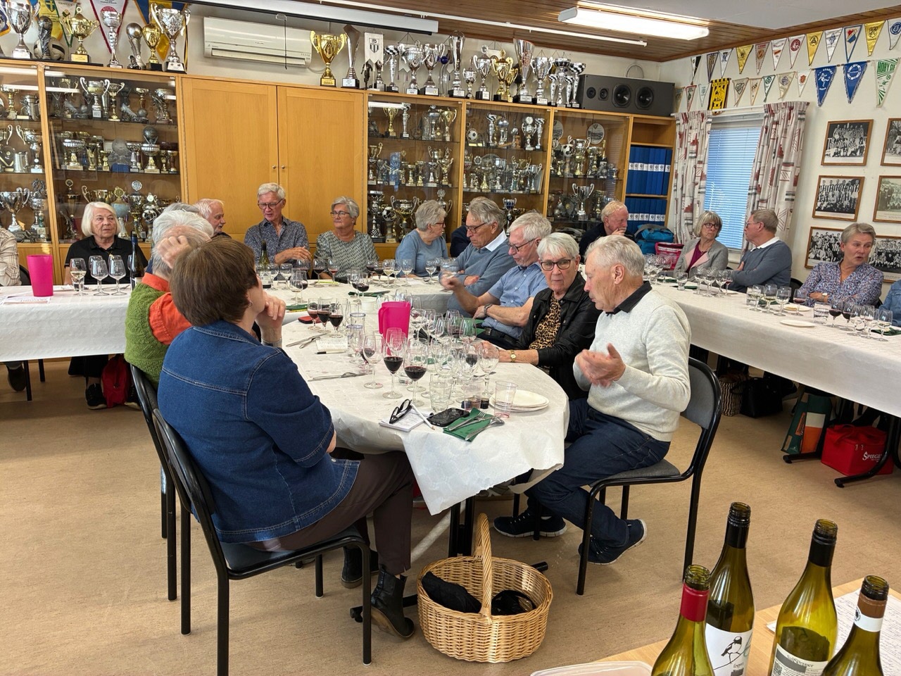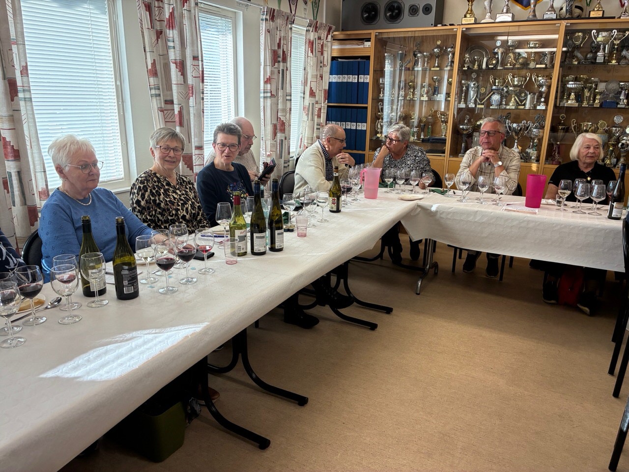 Vi var 47 medlemmar som träffades denna gång för att prova 7st olika viner. Palle ledde som vanligt provningen, som var ett slags examen för deltagarna.