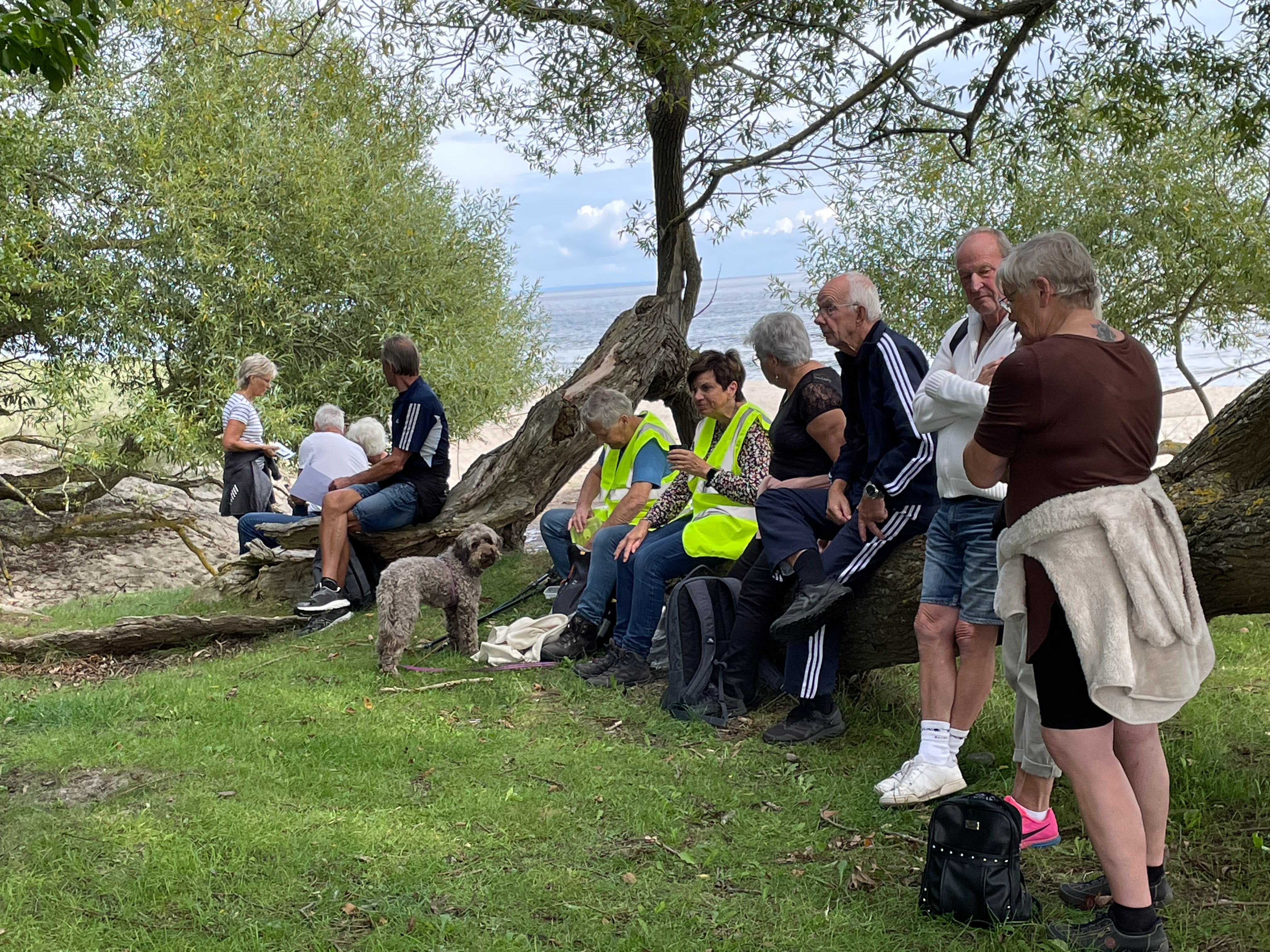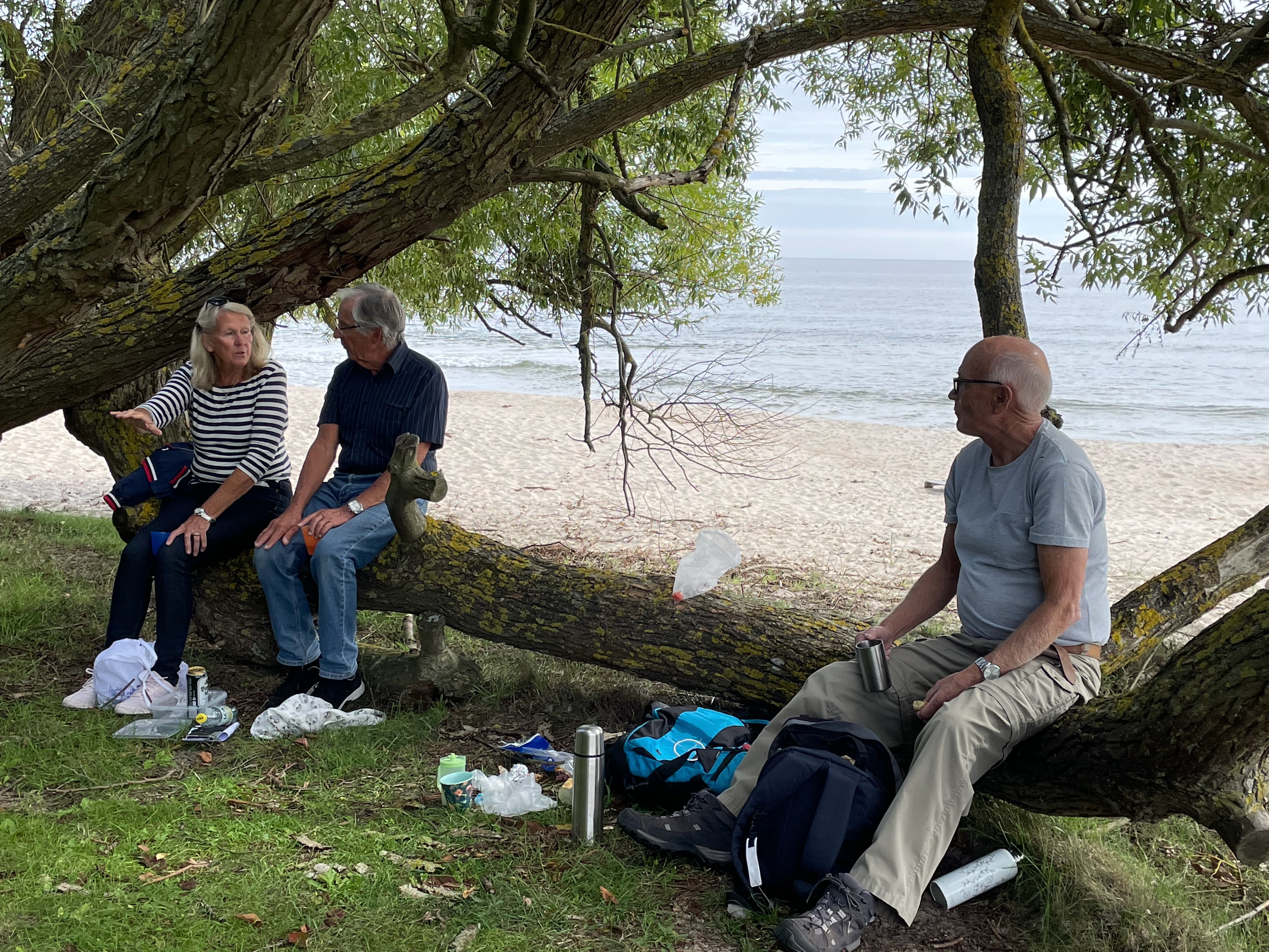 SPF Seniorerna Degeberga. SPF:are på höstens första vandring. Vi startade vid Holmaboden och vandrade in på skjutfältet och gick till där gamla Knäbäck har legat en gång i tiden. En fantastisk natur, lite karg men vackert. Lamadjur stod och såg ut över nejden, höll vakt över de andra djuren som betade. Nötkreatur och får. Lennart Carlsson som har växt upp i gamla Knäbäck, berättade om husen, vilka som hade bott där och om livet i stort. Vi fick ta del av hur livet var i gamla Knäbäck som inte många visste om. Tack Lennart för en trevlig och intressant berättelse om gamla Knäbäck.