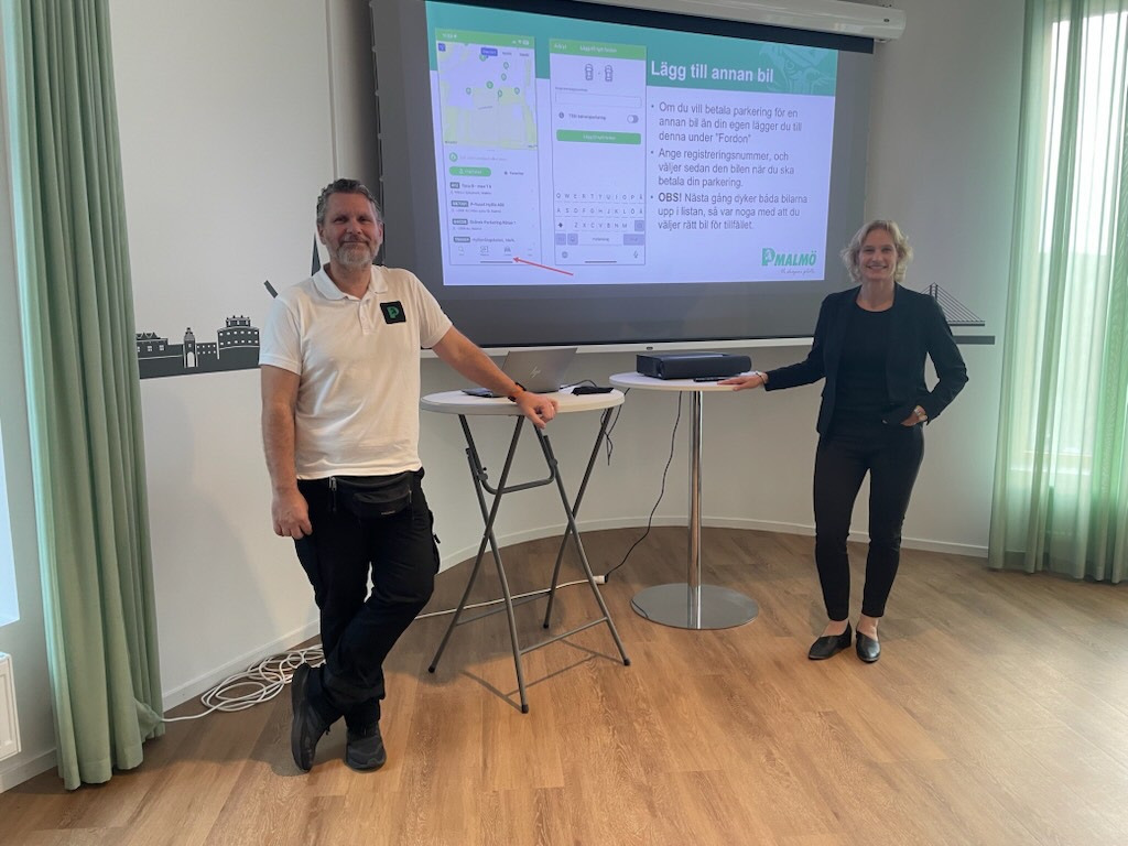 Efter en generell presentation av företaget fick vi en gedigen presentation i digital parkering - att betala bara för tiden bilen är parkering. Många goda råd fick vi till livs om hur appen skall användas: Undvik ”i närheten”, spara fem kronor på parkeringen om har konto i Parkster, lasta eller lossa bilen går bra trots P förbud ….. Detta och mycket annat fick vi veta kring många frågor som ställdes till våra värdar.
