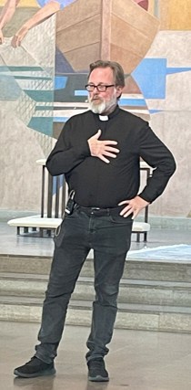 Komminister Stefan Gummesson hälsade oss välkomna i kyrkorummet.