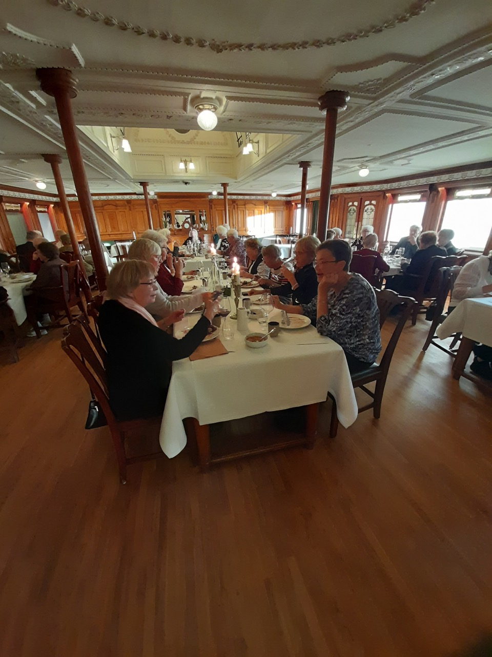Den som så önskade kunde beställa ett glas rött eller vitt vin samt öl! Stämningen i salongen var på topp och alla syntes mätta och nöjda med eftermiddagen! Säkerligen var det inte många som behövde avsluta kvällen med ”en liten anka”!
