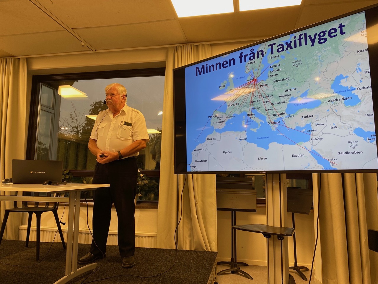 Onsdagen den 25 september hälsade vi 43 medlemmar välkomna till höstens första Trivselträff på AKKA. Vår gäst för kvällen - Folke Bäck - skulle berätta och visa bilder över ämnet ”Minnen från Taxiflyget”!