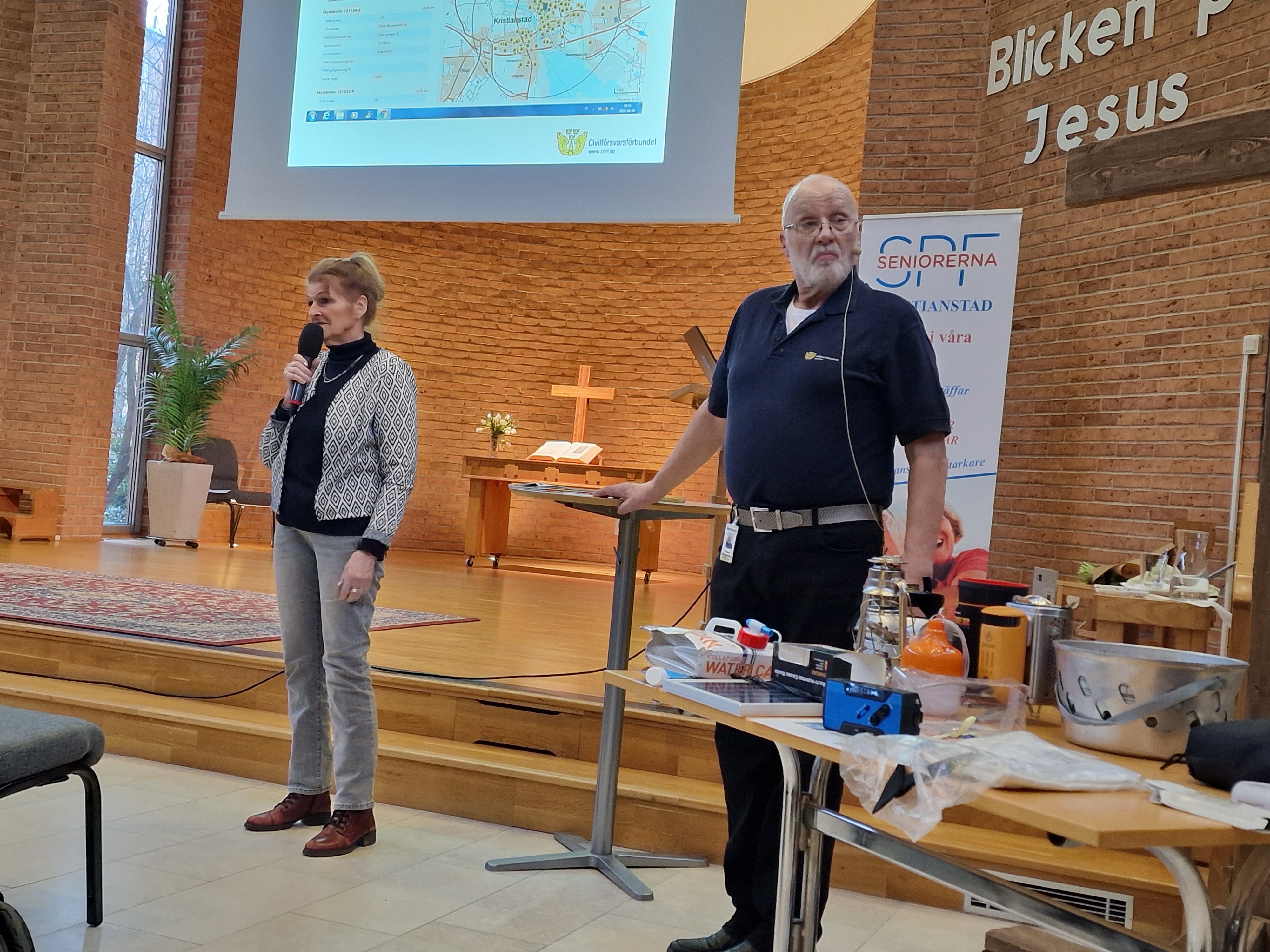 Vid vårt första medlemsmöte för året föreläste Anders Haegström och Agneta Cassmer från Civilförsvaret om vad vi behöver i vårt hushåll för att vara förberedda på oväntade händelser.