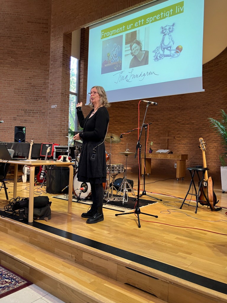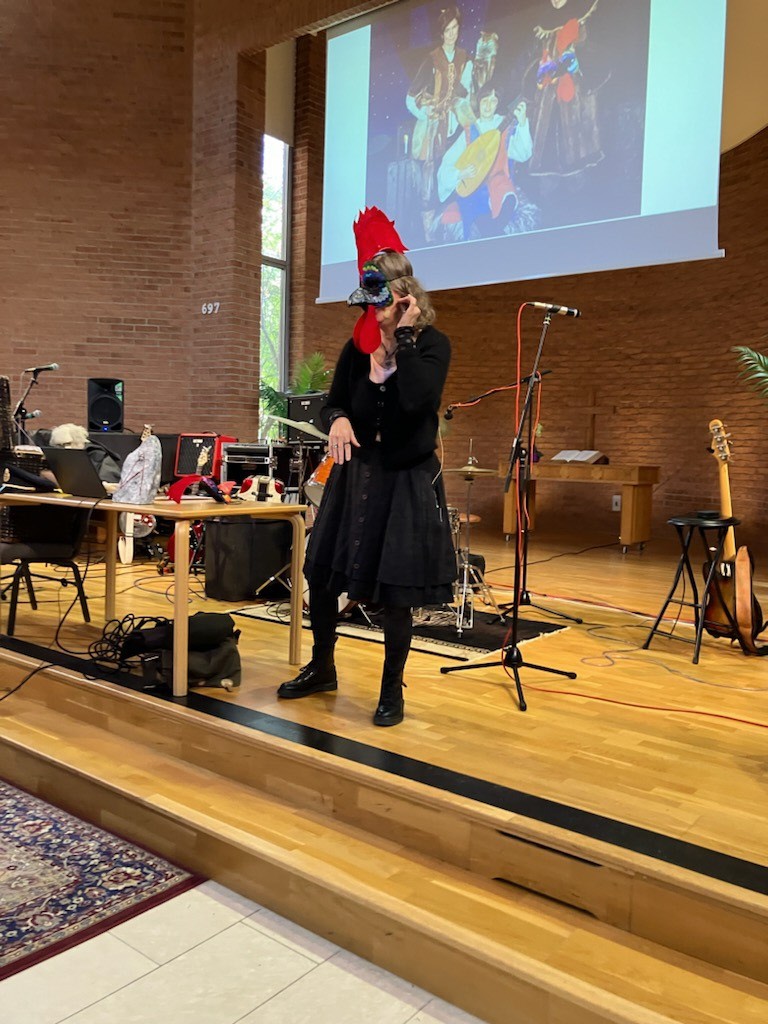 Vid medlemsmötet den 16 oktober berättade Tina Lundgren målande om sitt "spretiga liv" med dockor, masker, bilder, sång och skådespel.