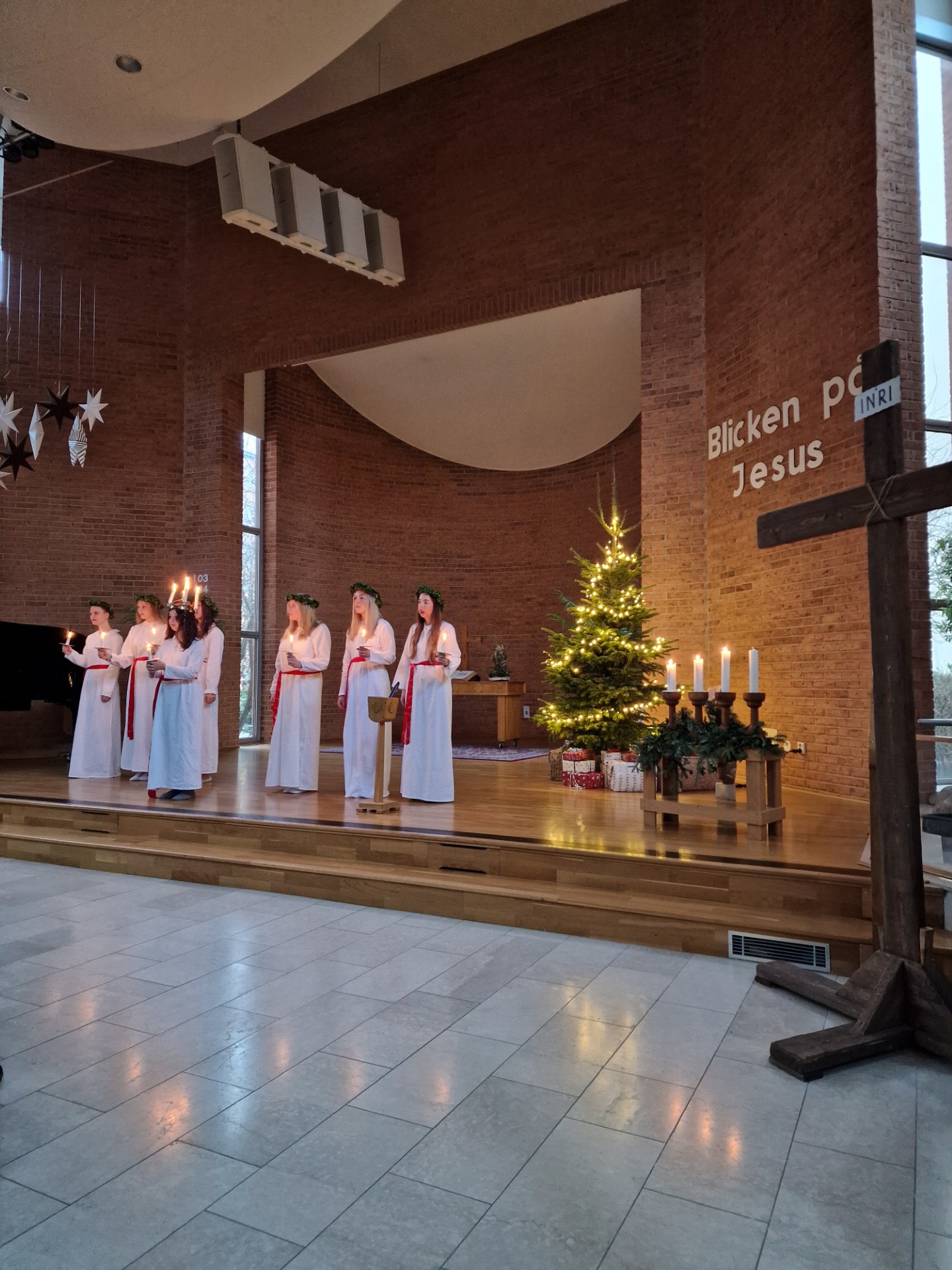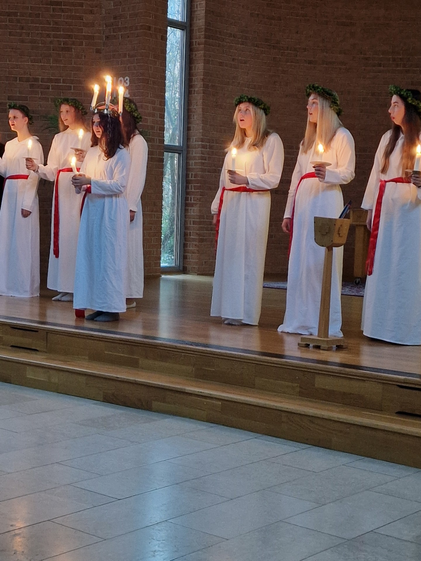 140 medlemmar kom till vår medlemsträff med luciatåg i Östermalmskyrkan den 18 december. Efter att ha njutit av vacker lucia- och julsånger samtlades alla i samlingslokalen för att inta en landgång med efterförljande kaffe och julkaka. Lucia med tärnor kom från Kristianstad musikskola under ledning av Karin Mattsson.