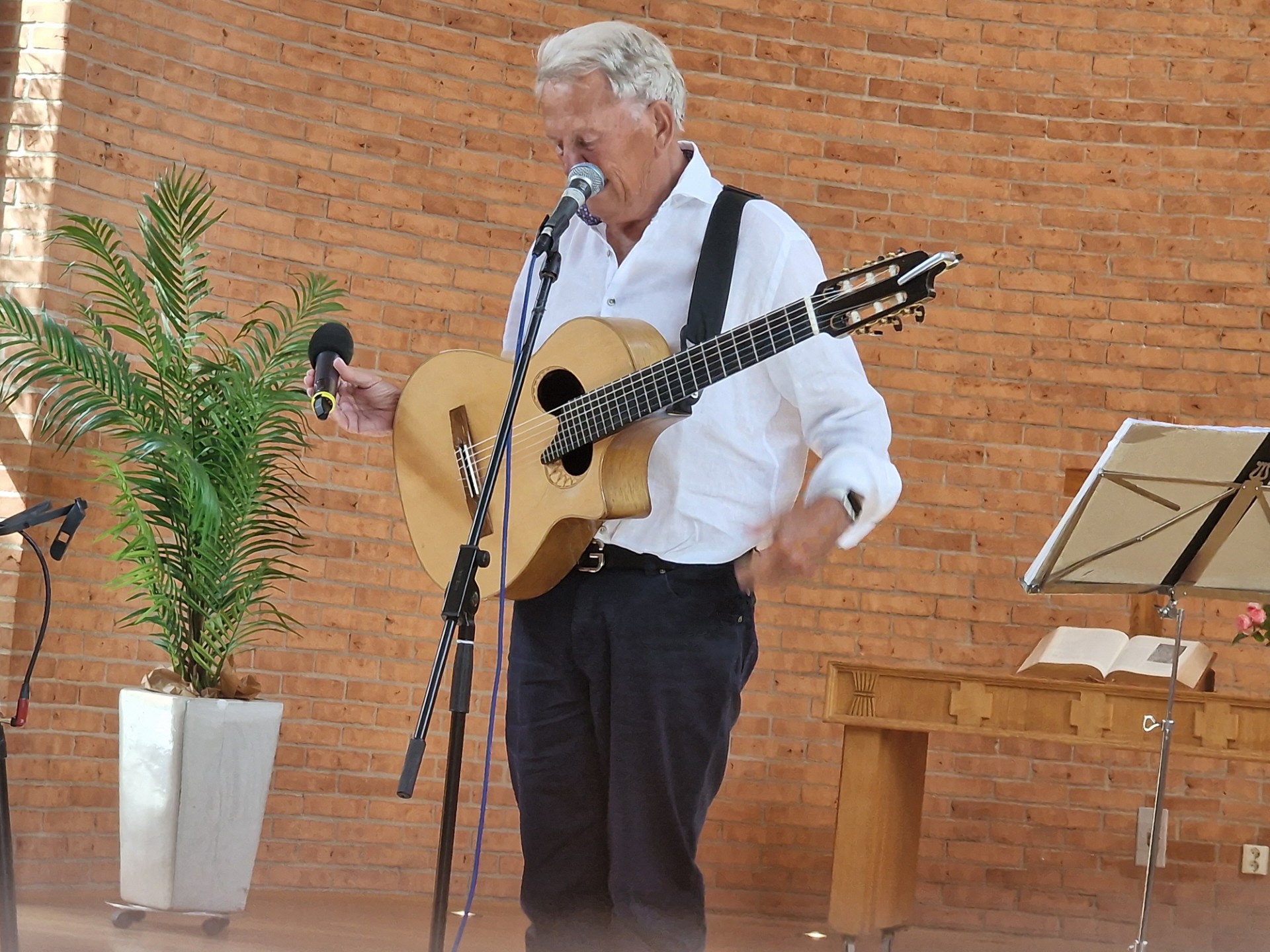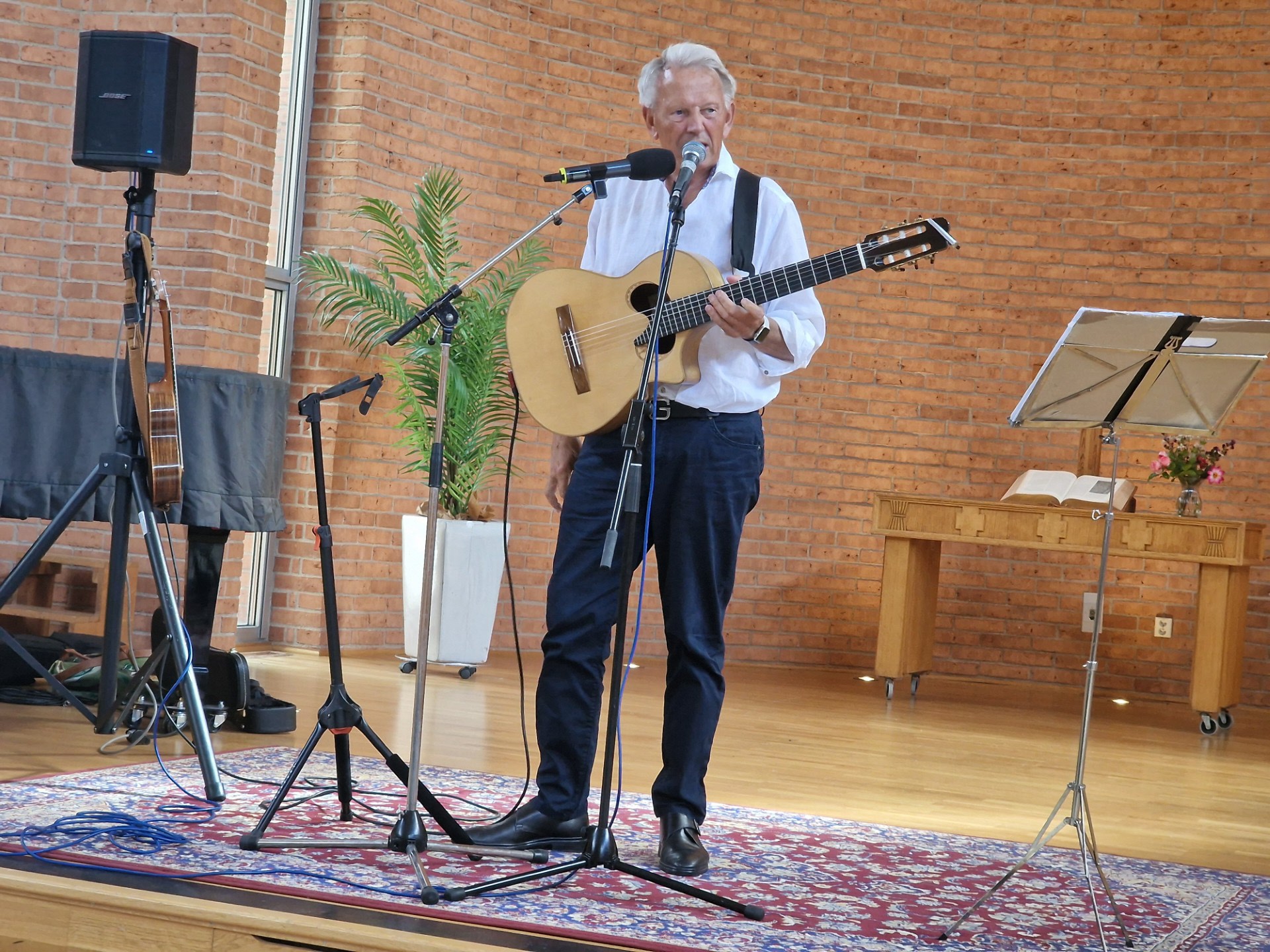Vi i SPF Seniorena bjöd in till sommarträff i Östermalmskyrkan där medlemmarna kunde ta med sin en vän eller bekant för samvaro i gemenskap med andra. Förutom en fantastisk underhållning av Mikael Neumann bjöds på kaffe och kakor. Mikael Neumann är en känd dansk/svensk gitarrist, sångare och textförfattare och under den timme han underhöll, visade han alla sina talanger, som sång, trevlig underhållning och roliga visor. Eva Johansson hade komponerat ett smart quiz och det delades ut priser för de med flest rätt. Eftermiddagen avslutades med läsk och mingel.