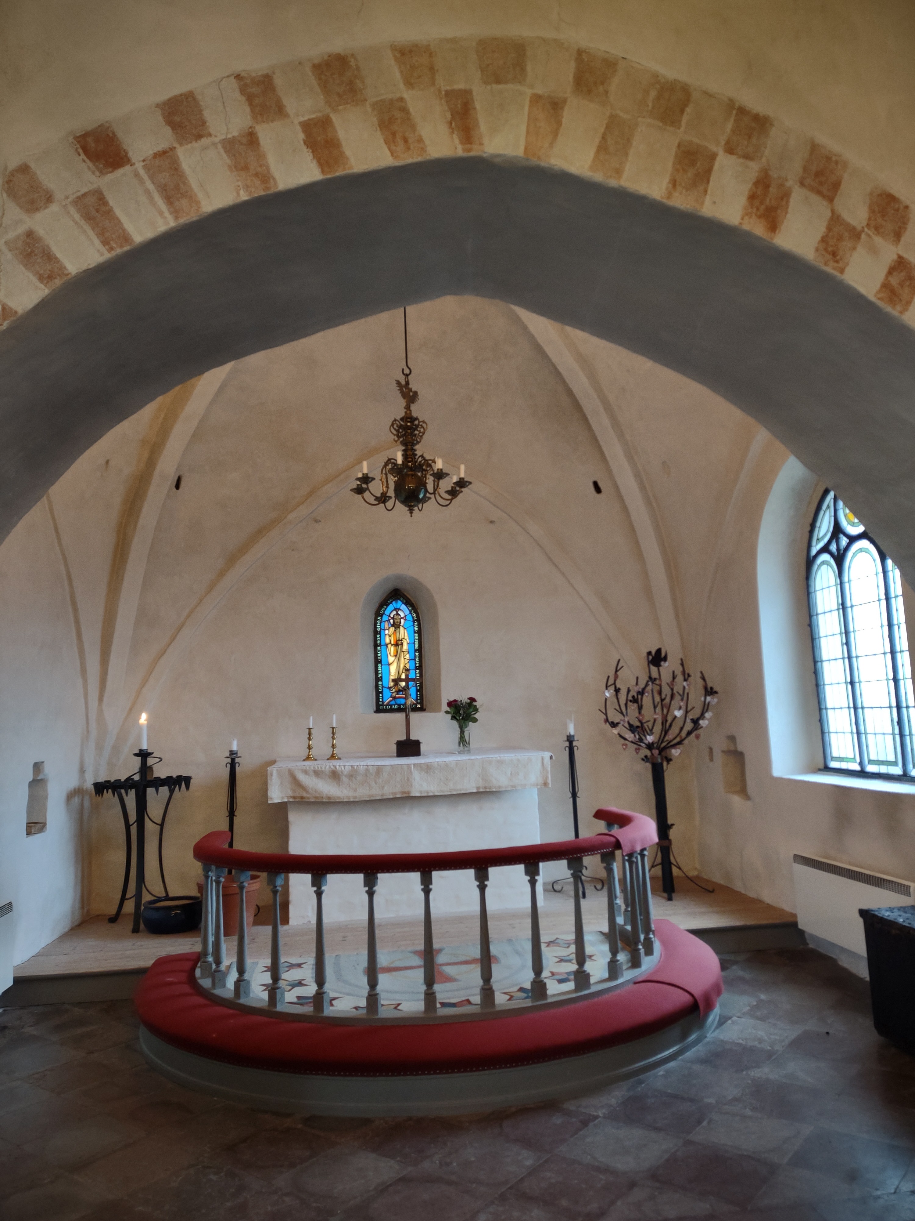 Vi började inne i kyrkan med information om trakten runt Råby. Därefter gick vi ut och tittade på kyrkan exteriört. Åter inne i kyrkan fick vi höra om interiören.