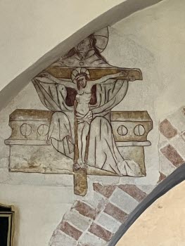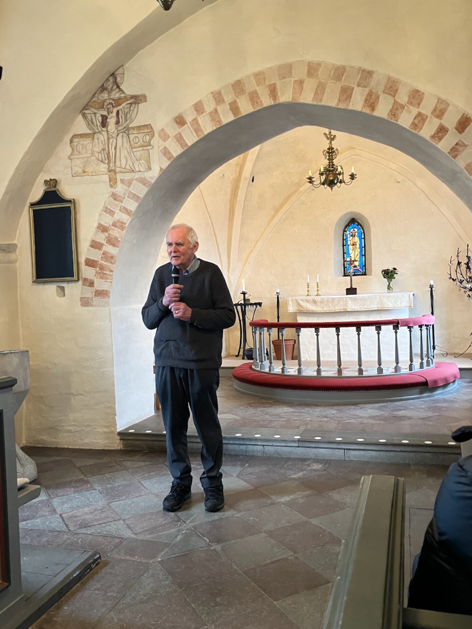 Vi togs emot av prästen Bengt Arvidsson (bilden) som var vår guide. Han är pensionerad men volonterar ibland i kyrkan bl a vid gudstjänster och som guide.