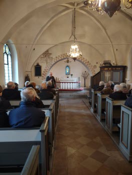 Den 6 mars - en kall och blåsig dag - var vi ett 30-tal medlemmar som besökte kyrkan. Många fler ville komma med, men deltagarantalet var begränsat. Därför ordnas ett nytt besök i kyrkan och på Råbylunds gård i april.