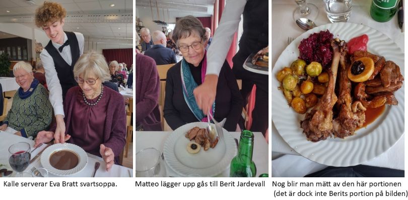 Gåsmiddag är lockande för SPF Lund Centrums medlemmar. Vår ordförande hade bokat nästan alla tillgängliga platser på Vipans restaurangskola den 14 november. Det blev snabbt fulltecknat. När alla SPF:are samlats var vi 39 personer.