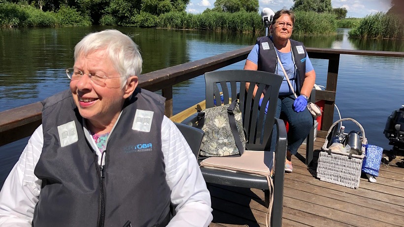 Besättningen på flotten bestod av kaptenen som hette Patrik Kjell och Gun-Britt Jönsson som bjöd på kaffe. Den här turen hade flotten sex passagerare så alla kunde sitta med behörigt coronaavstånd. Deltagarna betonar att det hela är ett handikappvänligt arrangemang.