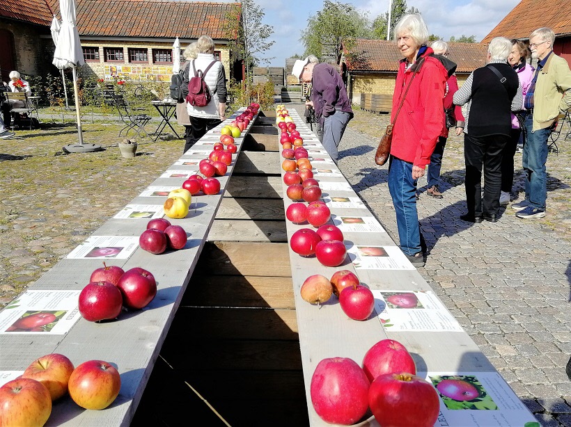 Vi fick smaka på ett äpple, som heter Santana och som även kan ätas av personer som är allergiska mot äpple. Äpplenas namn har stor betydelse. Äpplet Zari sålde dåligt, men då bytte man namn till Saga och då sålde det mycket bättre.