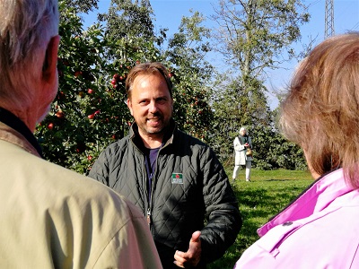 Deltagarna flockades kring Jan Jensen när han förmedlade sin stora kunskap om äppelodling.