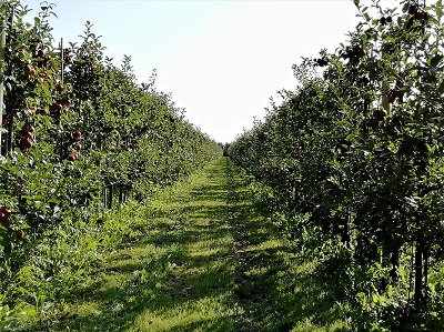 En annan intressant sak är, att var tionde träd i raderna är ett pollineringsträd, som ska locka till sig de bin som man hyr in för pollineringen.