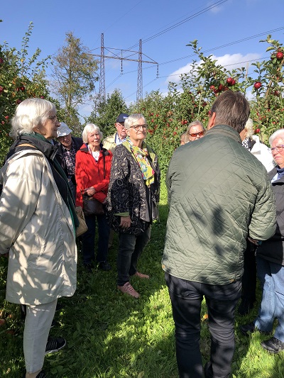 Solen sken från en klarblå himmel den 22 september, när färden gick mot Solnäs gård i Fjelie utanför Lund. I bussen satt ett gäng SPFare från Lund Öster, förväntansfulla inför att få intressant information om äppelodling. Vår guide, Jan Jensen, tog med oss ut i äppelodlingen och berättade många intressanta saker om hur odlingen går till. Solnäs gård ägs av Kiviks musteri på Österlen och tillsammans har man ca 76 000 träd.