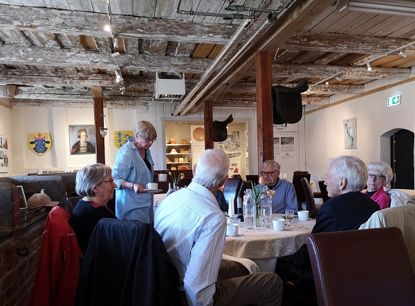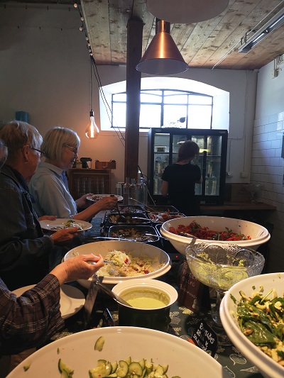 Avfärden från Thulehem var redan kl 12.45 så hungern började kännas hos deltagarna vid ankomsten till Börringekloster. Därför var lunchbuffén mycket välkommen. På den fanns bl a god ramslökssoppa, sallader och en lammgryta.