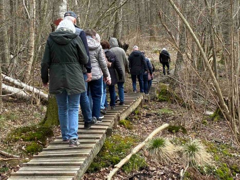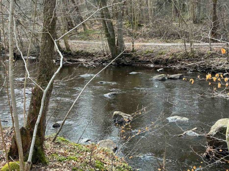 Måndagens promenad var förlagd till Klippan. Vi startade vid Elfdalens Hembygdsby och tog oss ner till Bäljane å. Därefter gick vi över till den norra sidan och följde ån nedströms. Under vägen fick vi syn på en nötväcka som satt på en trädstam vid stigen, samt de första vitsipporna som börjat slå ut.