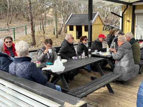 Vi slog oss ner på Kjollans servering och tog vi fram den medhavda fikan (med innehavarnas tillstånd) som intogs i det härliga vårvädret.