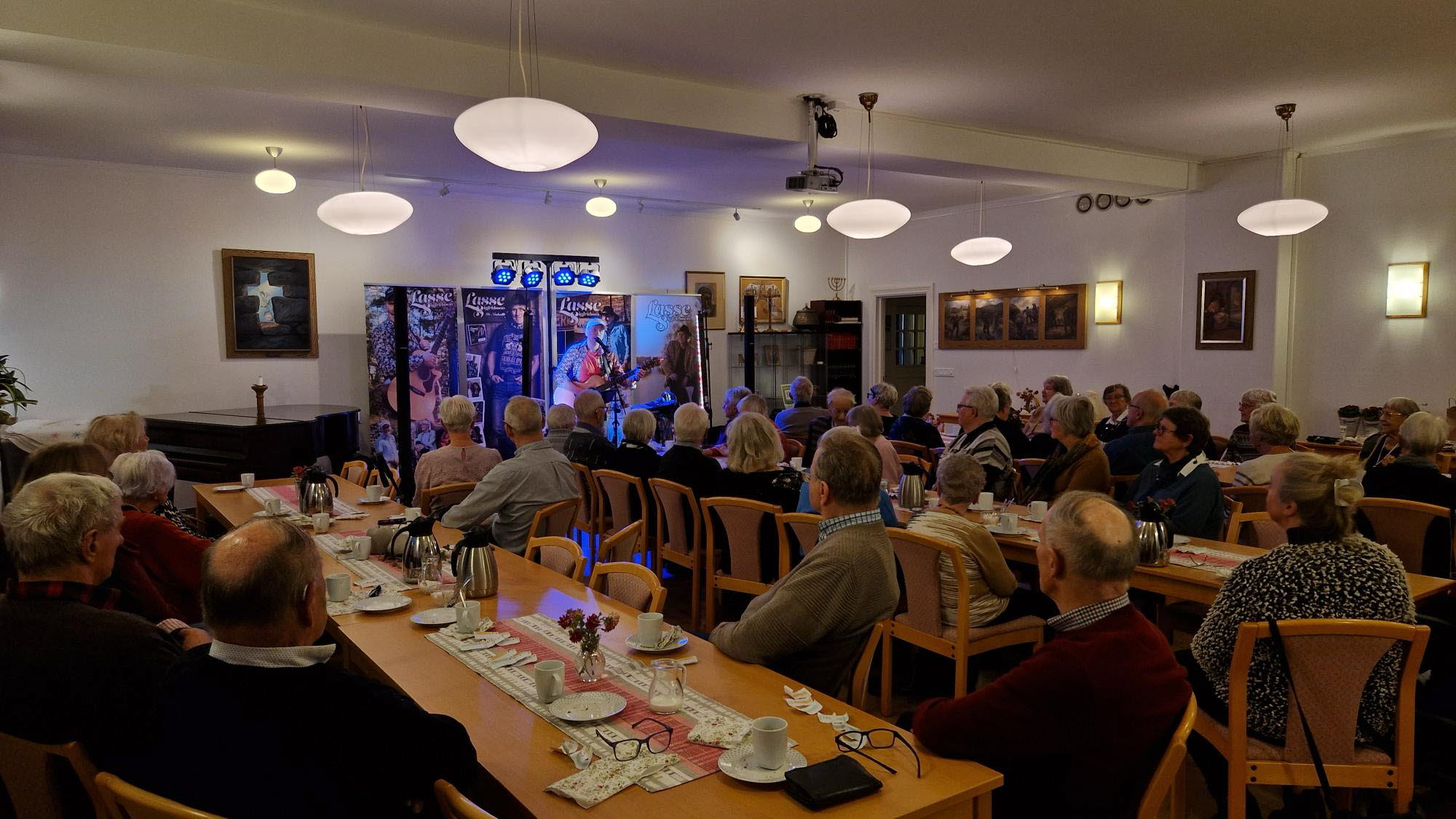 Två tillfällen per år bjuder föreningen på fika och underhållning på äldeboendet Tollaregården. Alla är välkomna att vara med!