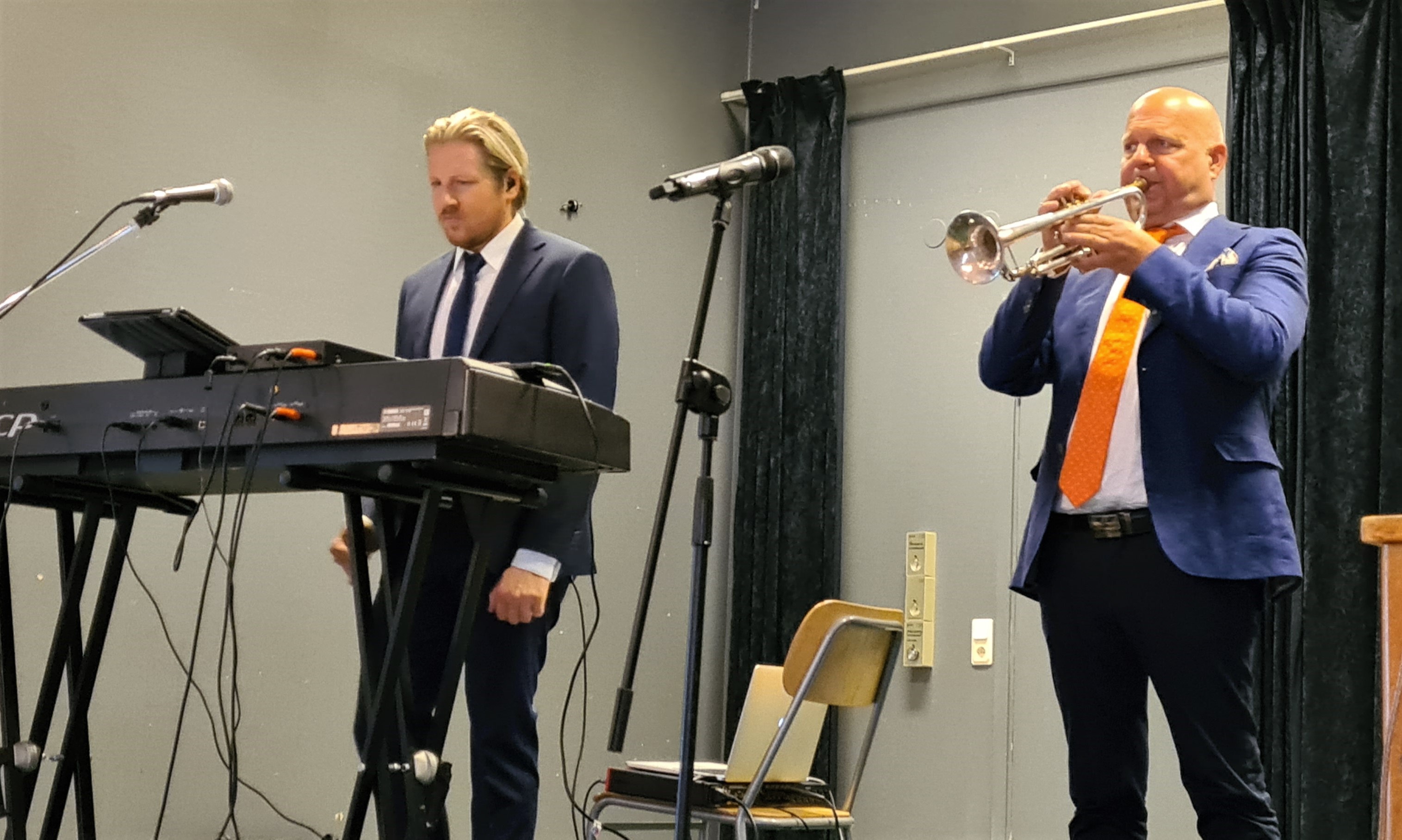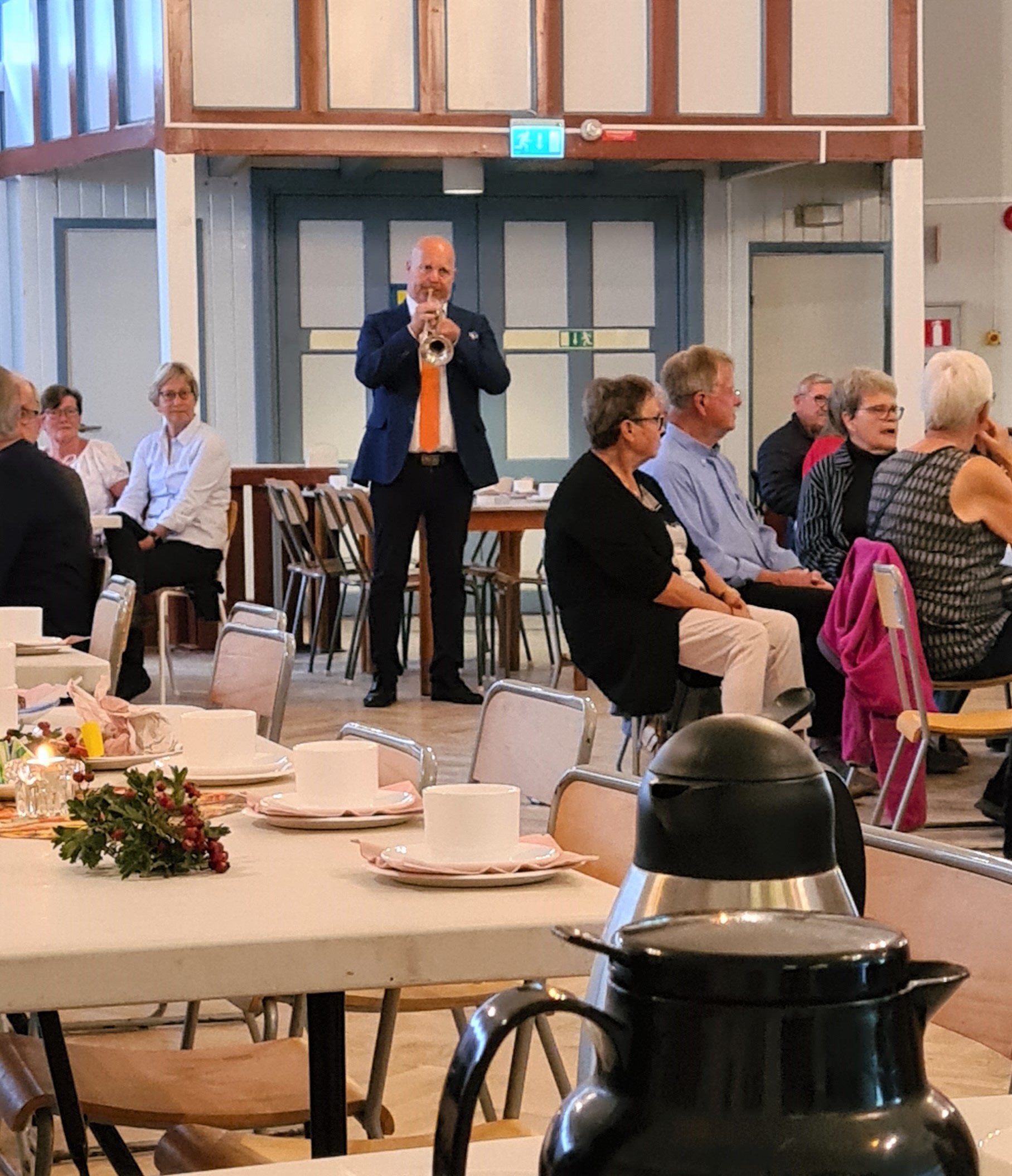 Denna dag samlades ett antal av kommunens äldre för att få information av Sparbanken Skåne, för att fika och för att lyssna på Magnus Johansson, trumpet, och Marcos Ubeda, klaviatur.