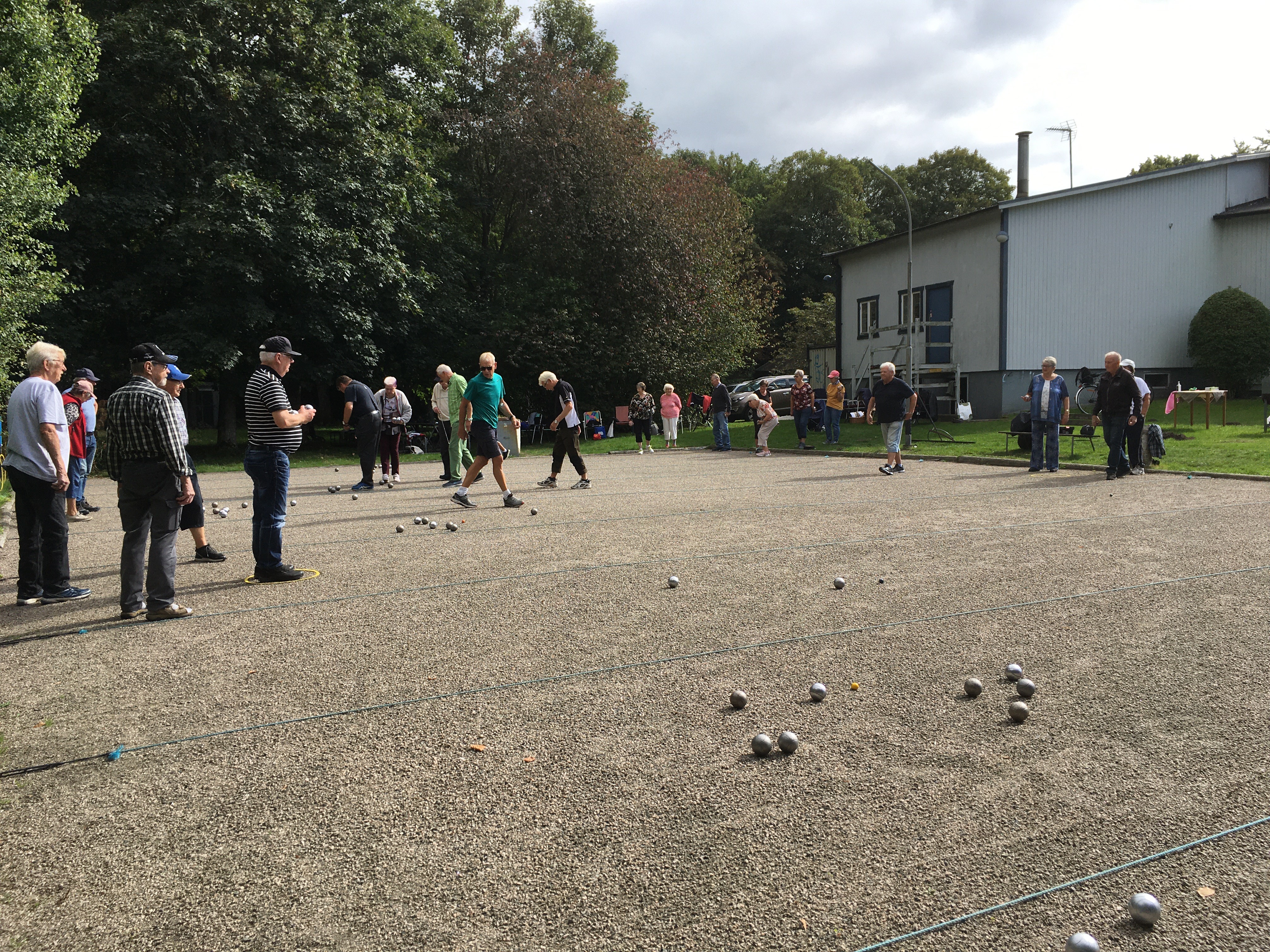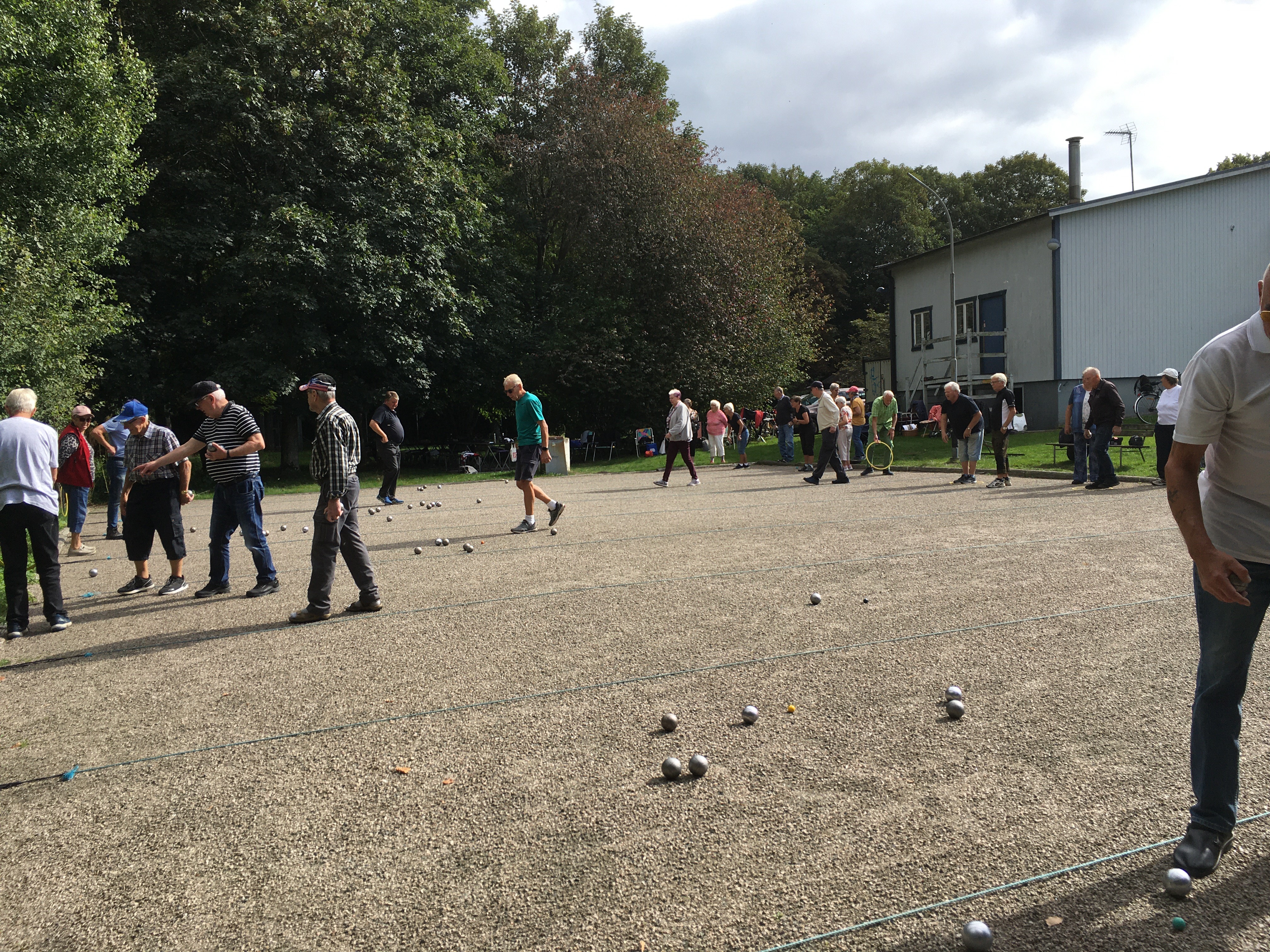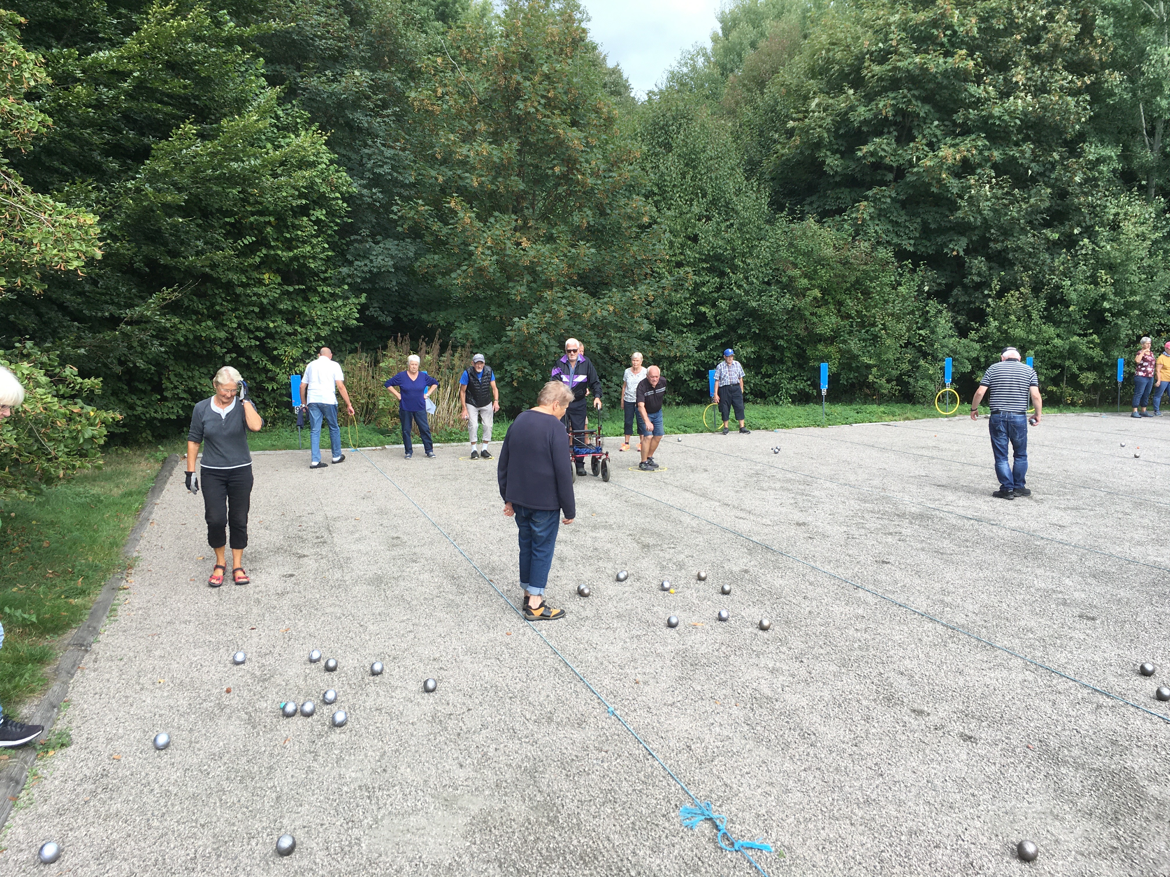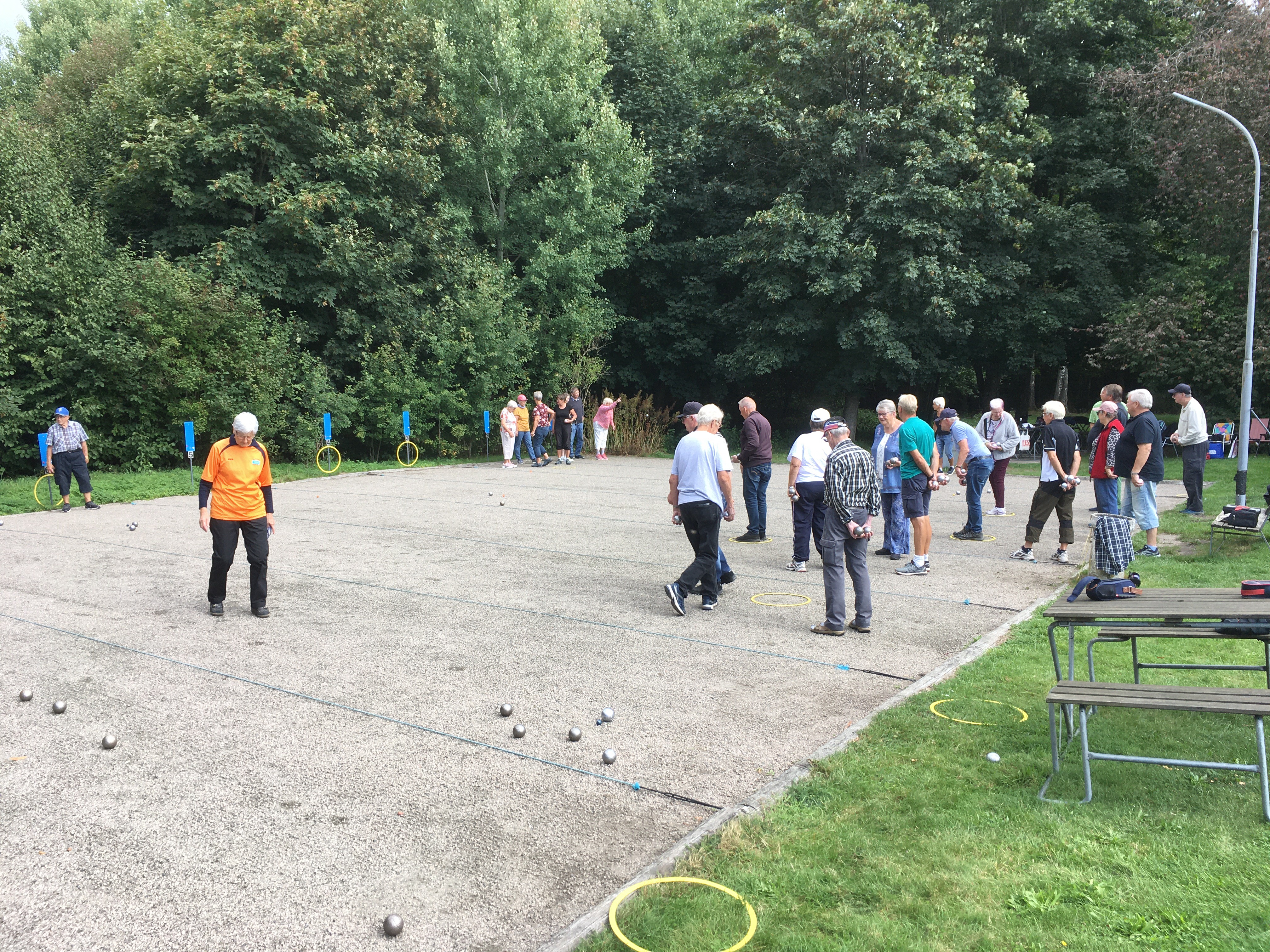 Denna fina höstdag samlades ett gäng glada och pigga pensionärer på boulebanan i Sjöbo Folkets Park för boulespel och korvgrillning.