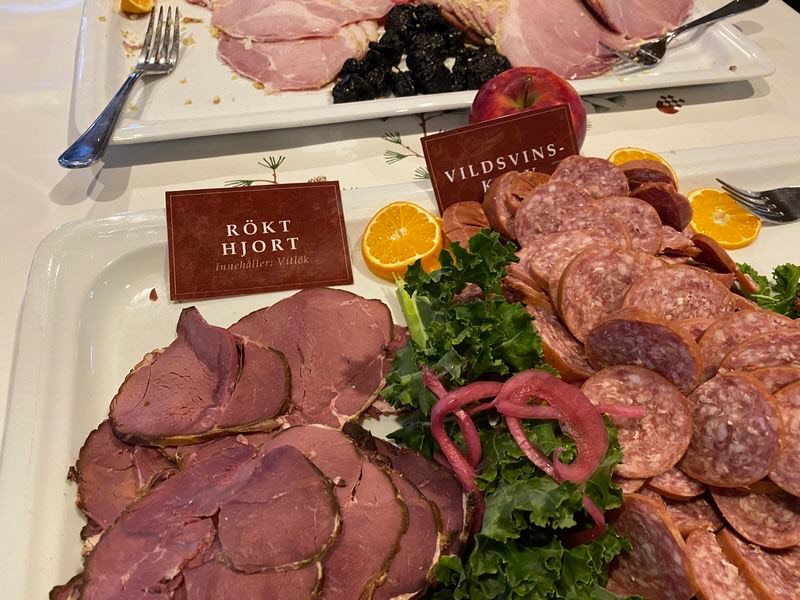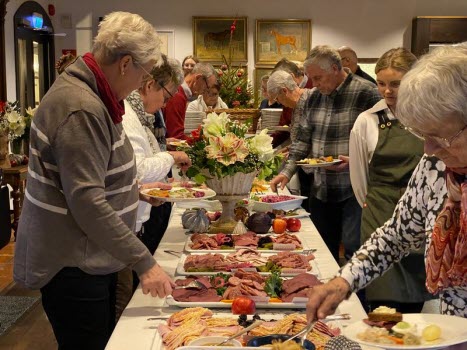 Julbord med alla julens delikatesser serverades i det gamla stallet.