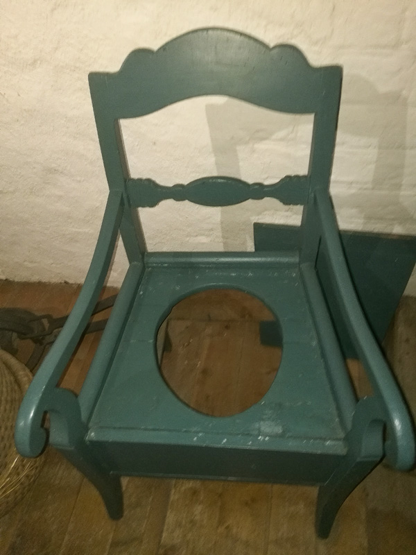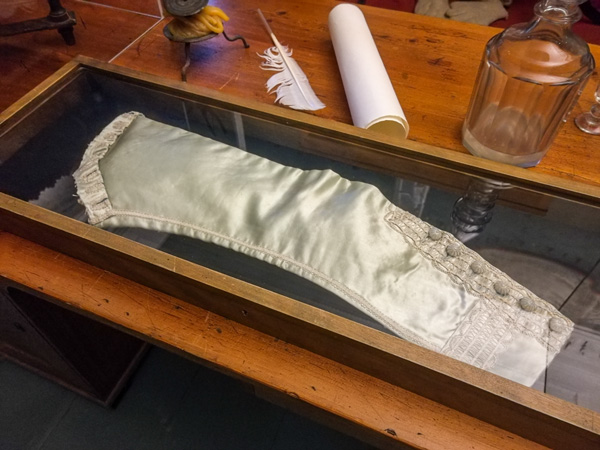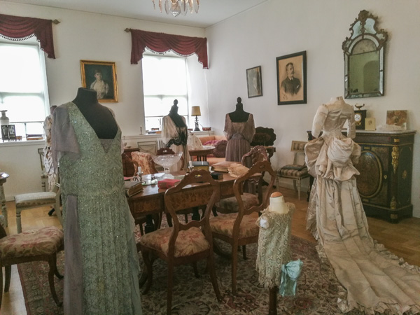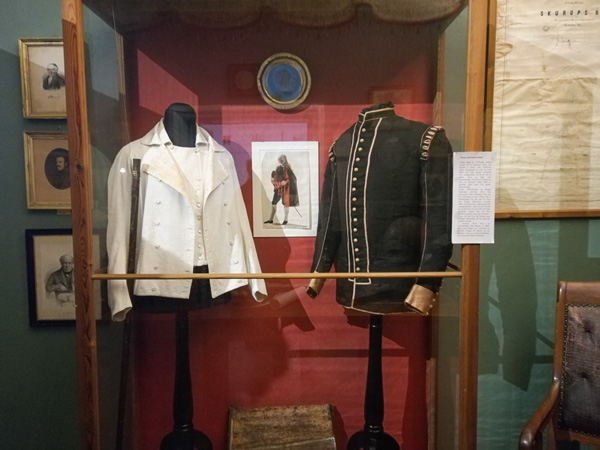 Slottet innehåller många intressanta saker från Mackleans tid, t ex hans bibliotek med ”svenska dräkten” som infördes av Gustav III med avknäppbara ärmar för olika tillfällen. Där finns tidstypiska möbler och kläder, främst kvinnokläder, från 1800- och början av 1900-talen. Utställningarna finns på fyra olika våningar så vi kunde motionera bort den del kalorier från middagen i trapporna!