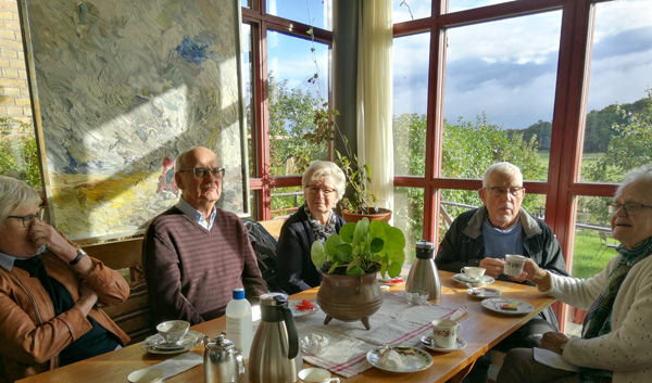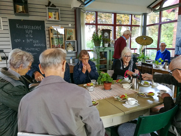 När vi kom fram till Sjöbo Kaffestuga regnade det rejält så det blev snabb marsch in till de härliga kakfaten och kaffet!