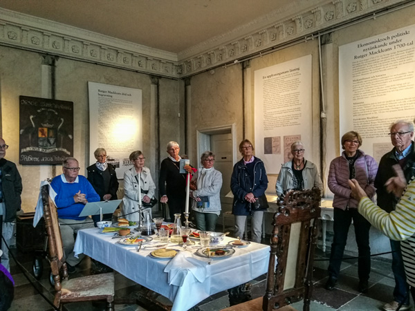 Vi körde sedan förbi Torups Slott, en av Nordens bäst bevarade renässansborgar, innan vi kom fram till Svaneholms Slott, där vi började med en delikat lunch (Wallenbergare och potatismos) och kaffe och kaka. Sedan delades vi upp i två grupper med varsin guide och fick oss berättat om slottets historia och invånare under seklerna.