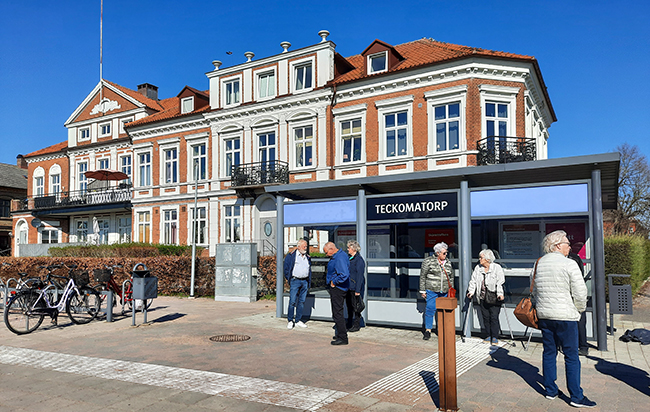 Vi hann med en promenad runt det stora torget också där genom flera imponerande hus och byggnader kunde förnimma Teckomatorps forna glans. Det blev dock en extra väntan på tåget som var försenat p g a passkontroll i Malmö. Men vi hade härligt solsken även om vinden bet!