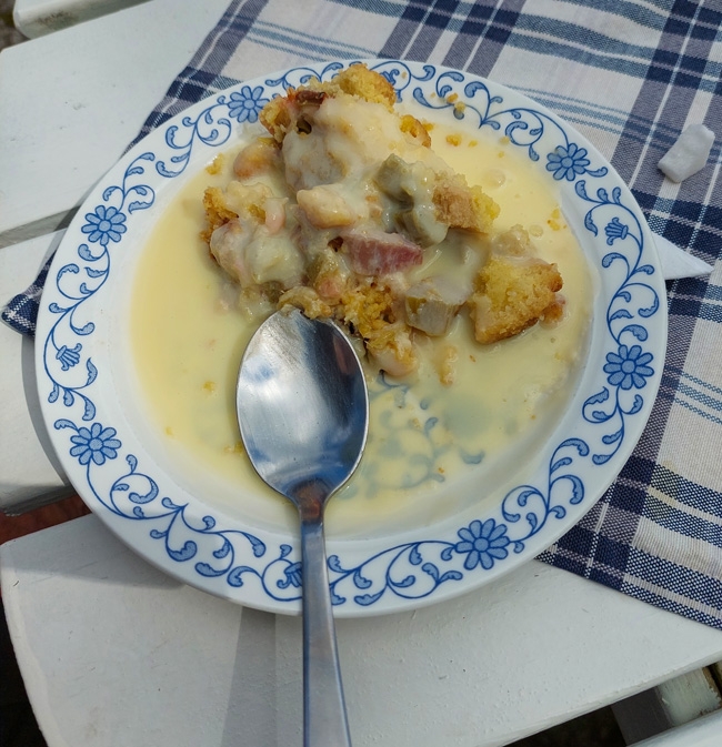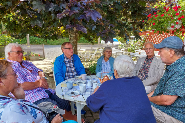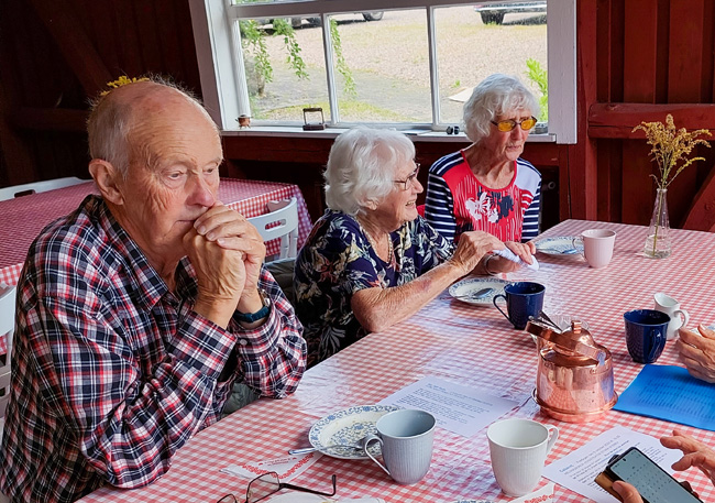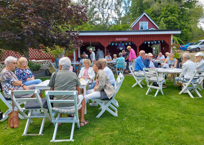 Sedan 2020 heter “Lotta” Marianne Dahl och det var hennes ljuvliga rabarberpaj och lena vaniljsås som serverades till kaffet. Vädret var på vår sida och vi kunde sitta ute i trädgården och solen tittade fram lite också.