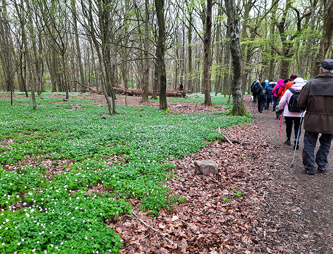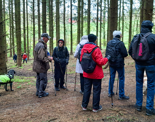 Det var förvisso inget vårväder som mötte de 22 medlemmar som samlades vid stationen i Billesholm den 19 april 2024. Termometern visade 2 plusgrader och regnet hängde i luften. Det var Johnny som ledde vandringen. Boende i Billesholm kan skatta sig lyckliga, de har skogen alldeles utanför bebyggelsen. Efter bara några hundra meter var vi inne i bokskogen. Där gick vi ibland på den nerlagda järnvägen som en gång gick till gruvorna i skogen. Vi gjorde några stopp då Johnny berättade om gruvor som funnits där. Schakt Viktor vid den stora eken där gruvarbetarna, efter avlöningen, brukade samlas, festa och spela kort. Det resulterade i att fruarna fick hämta ut lönen. Därefter kom vi till schakt Knut. Det största schaktet var Ivar med den stora slagghögen.