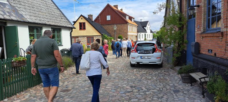 24 vandrare samlades på Maxi:s parkering bort mot Landskronavägen och fortsatte promenaden in i Råå, genom de gamla gatorna och ut mot fiskeläget.