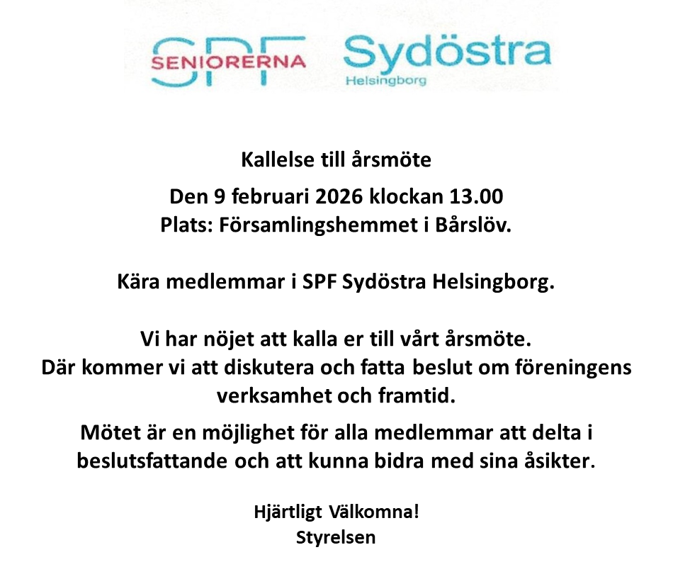 Kallelse till årsmöte 9 februari 2026.