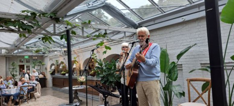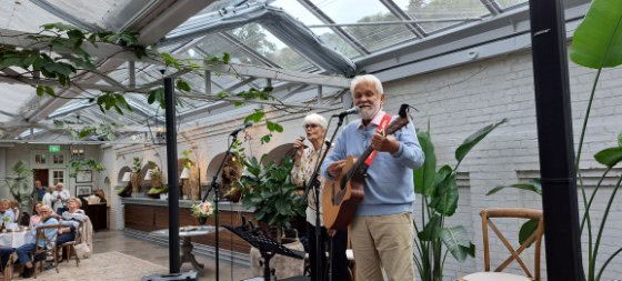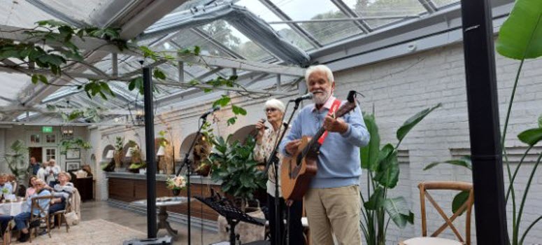56 deltagare från SPF Sydöstra njöt av sång och musik med Hasse Andersson och Monica Forsberg.