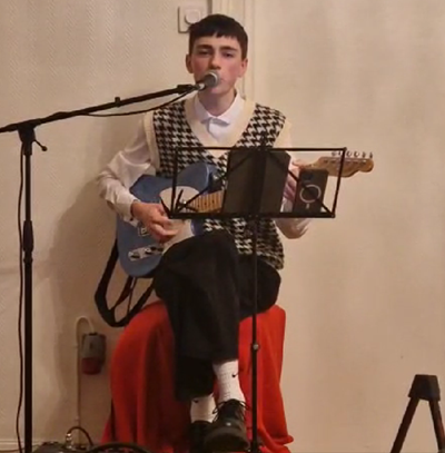 Isak Ivehed, 18 år gammal och går sista året på gymnasiet, underhåller oss.