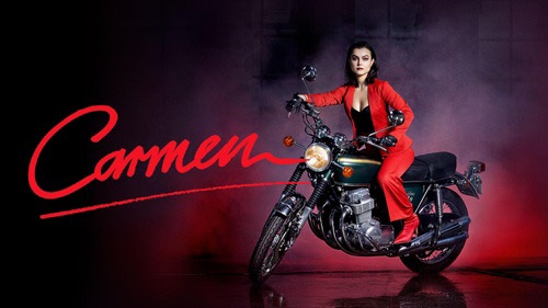 Från den stund Carmen gör entré på sin motorcykel blir hon centrum i en karusell av passion, svartsjuka och drama. En eldig, stark och självsäker kvinna som vägrar låta sig fångas blir ett rött skynke för de män som vill äga henne. Och som så många gånger i det verkliga livet, får det ödesdigra konsekvenser.